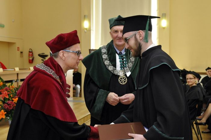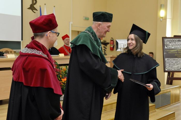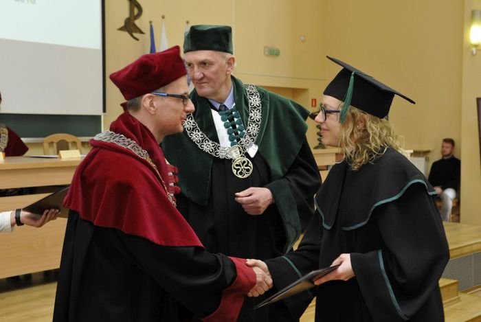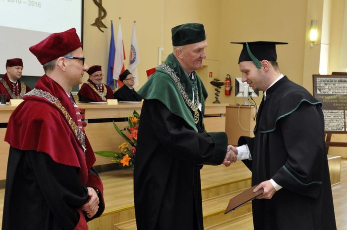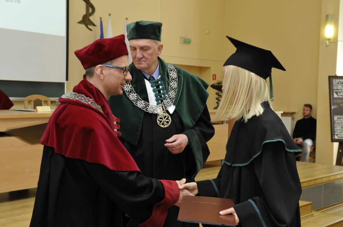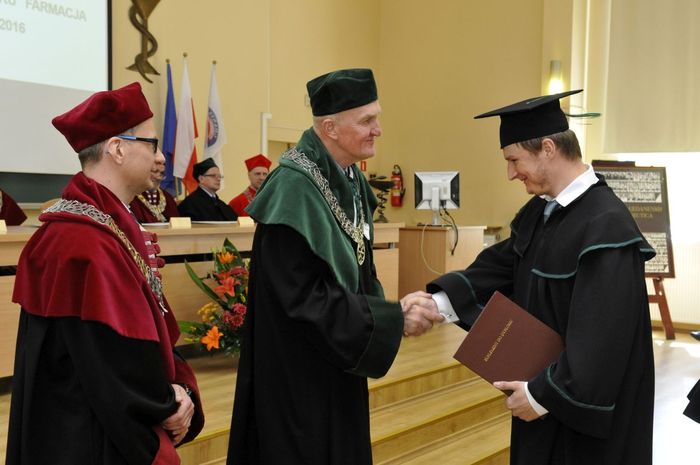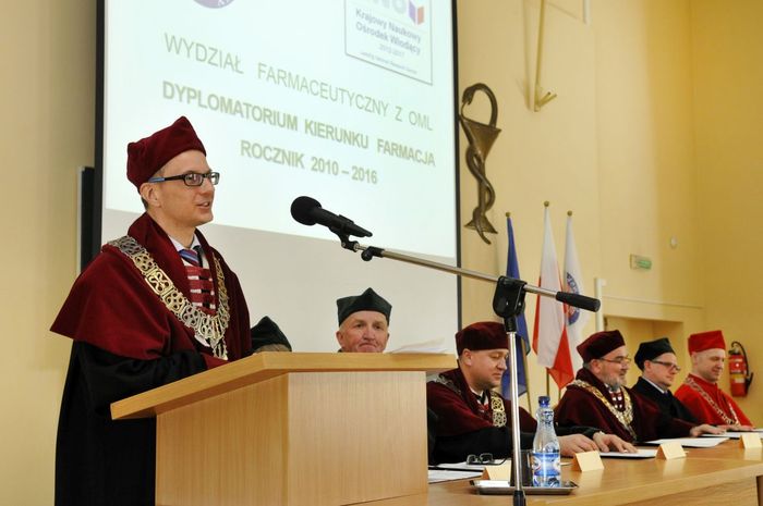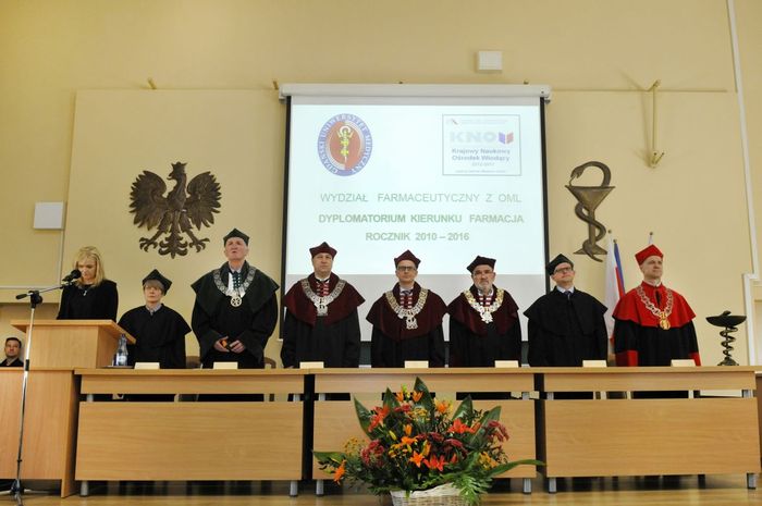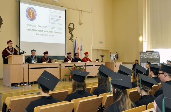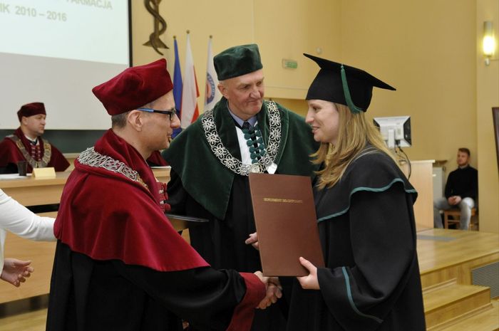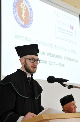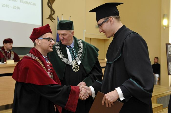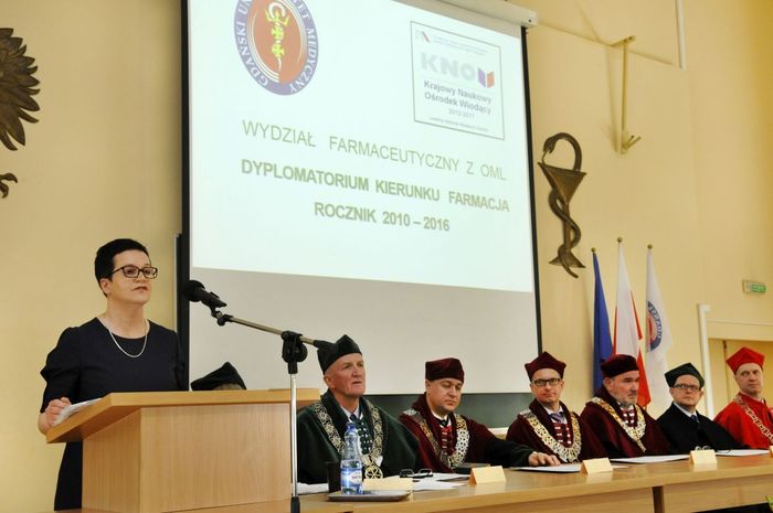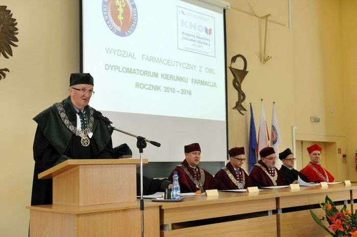 Dziewięćdziesięciu siedmiu magistrów farmacji rocznika 2010-2016 odebrało dyplomy 6 maja br. w Auditorium Maximum Wydziału Farmaceutycznego z Oddziałem Medycyny Laboratoryjnej. W uroczystości, której przewodniczył dziekan WF z OML prof. Wiesław Sawicki, uczestniczyli: prorektor ds. studenckich prof. Marcin Gruchała, rektor elekt, prorektor ds. nauki prof. Tomasz Bączek, prorektor ds. rozwoju i organizacji kształcenia prof. Leszek Bieniaszewski, dziekan MWB UG i GUMed prof. Igor Konieczny, prodziekani WF z OML – prof. Michał Markuszewski i dr hab. Anita Kornicka, członkowie Rady Wydziału oraz zaproszeni goście i rodziny absolwentów.