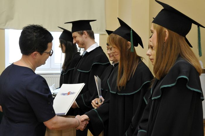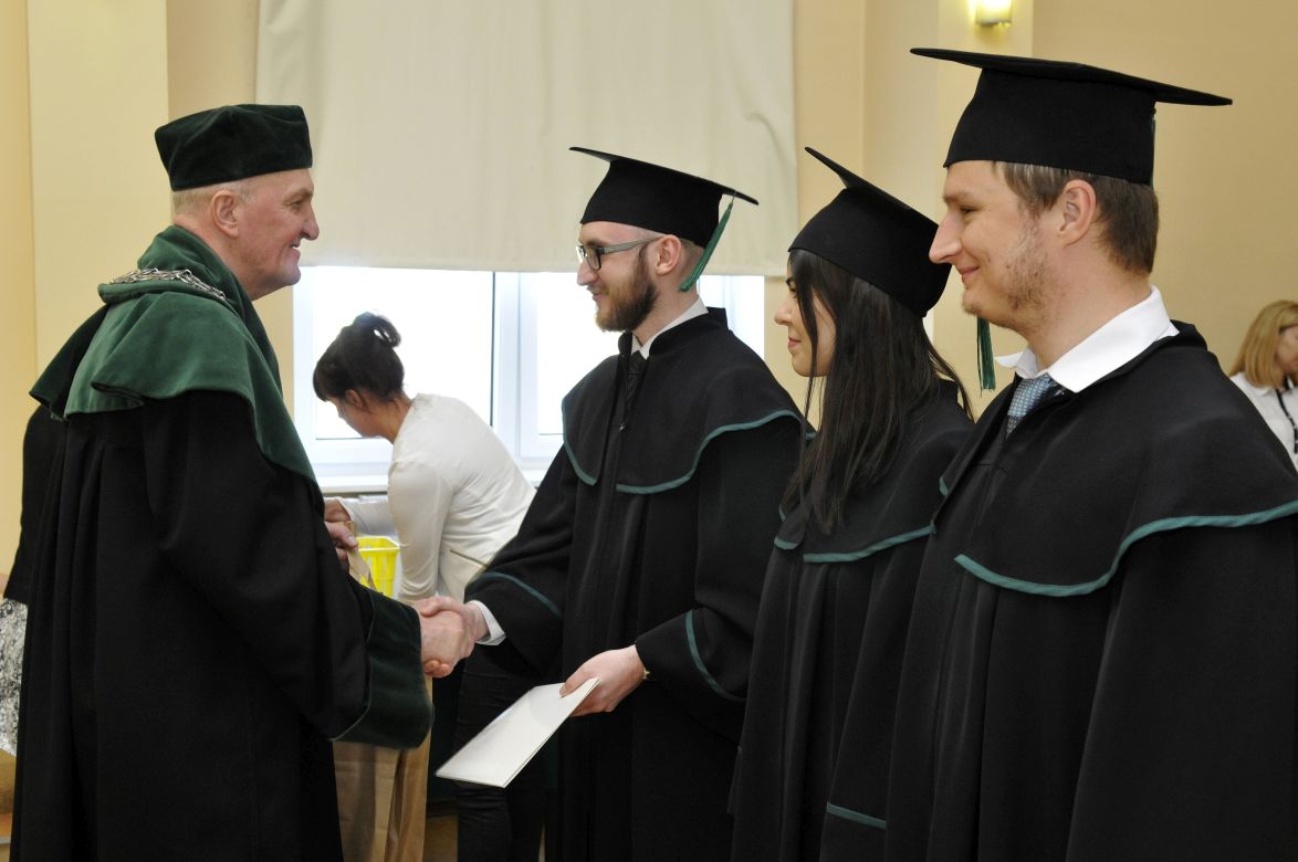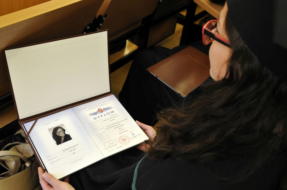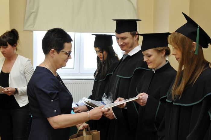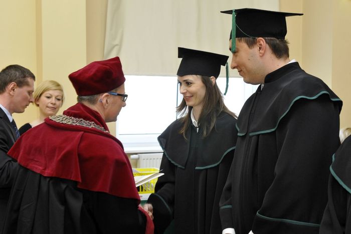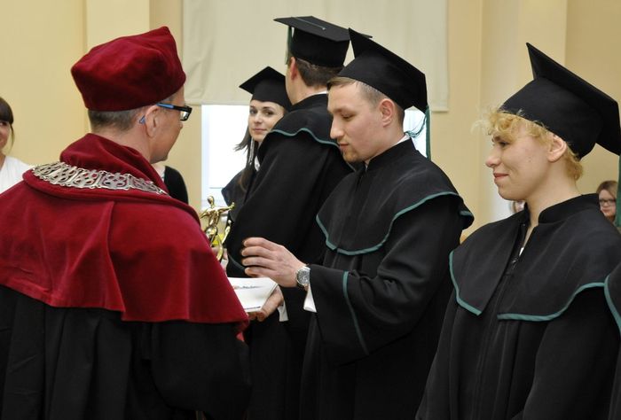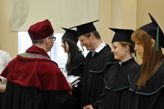 Po złożeniu przyrzeczenia absolwenci odebrali dyplomy z rąk rektora elekta prof. Marcina Gruchały i dziekana prof. Wiesława Sawickiego. Wyróżniającym się absolwentom wręczono listy gratulacyjne i nagrody książkowe ufundowane przez Gdańską Okręgową Izbę Aptekarską. Za wyniki w nauce nagrodzono: Wiolettę Gancarz, Aleksandrę Grabowską, Izę Szarłowską i Dorotę Marcinkiewicz. Za działalność na rzecz społeczności akademickiej wyróżnieni zostali: Bartosz Petrykowski, Anna Twarogowska, Anna Sosnowicz-Pytel i Wojciech Gostomczyk. Ponadto Anna Twarogowska i Wojciech Gostomczyk otrzymali nagrody Rektora za pełnienie z wielkim zaangażowaniem wielu funkcji w organach Uczelni i strukturach Uczelnianego Samorządu Studenckiego. Z kolei Wioletta Gancarz odebrała nagrodę im. prof. Stanisława Janickiego, ufundowaną przez Gdańską Okręgową Izbę Aptekarską. Wręczył ją prezes GOIA dr Paweł Chrzan.