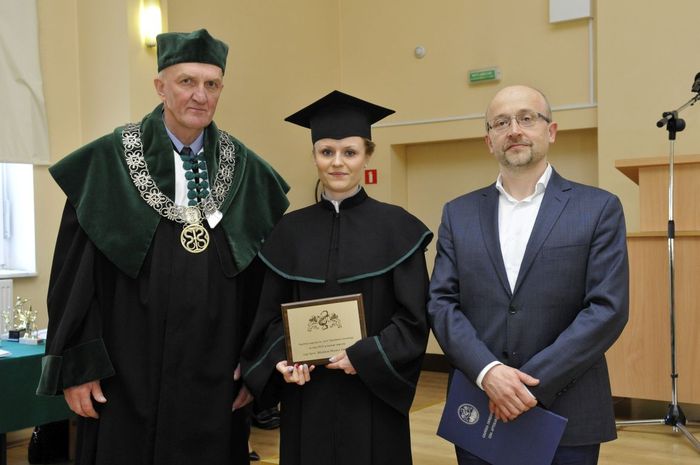 Dziekan prof. Wiesław Sawicki i prezes Oddziału Gdańskiego Polskiego Towarzystwa Farmaceutycznego prof. Piotr Kowalski wręczyli nagrody laureatom tegorocznego Wydziałowego Konkursu Prac Magisterskich. Otrzymali je: