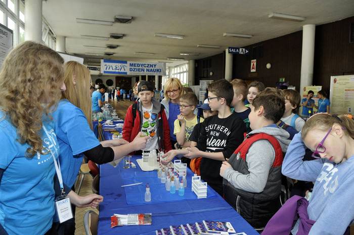 Nerki z drukarki, jajkożerna butelka i burza w probówce – to tylko niektóre z atrakcji IX Medycznego Dnia Nauki. Akcja popularyzująca medyczne wśród najmłodszych mieszkańców naszego województwa odbyła się 20 maja w godz. 9-13 w Collegium Biomedicum. Imprezę oficjalnie rozpoczął rektor prof. Janusz Moryś, który powitał zgromadzonych gości. Wśród obecnych nie zabrakło przedstawicieli firm sponsorskich oraz pracowników naszej Uczelni, w tym m.in. kanclerza Marka Langowskiego, prof. Jacka Bigdy, dyrektora Biura ds. strategii i współpracy międzynarodowej czy dr. hab. Marcina Matuszewskiego, kierownika Katedry i Kliniki Urologii. Wykład inaugurujący MDN wygłosił Mikołaj Frankiewicz, lekarz z Uniwersyteckiego Centrum Klinicznego, który przybliżył słuchaczom możliwości wykorzystania druku 3D w medycynie.
