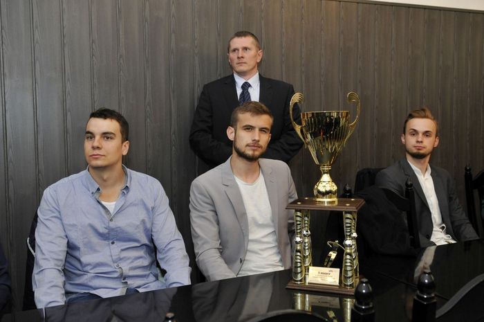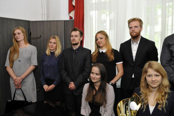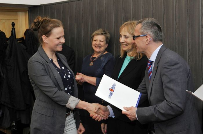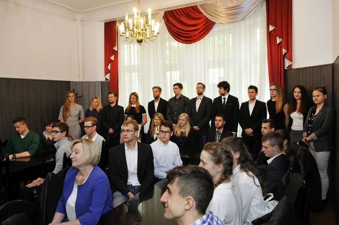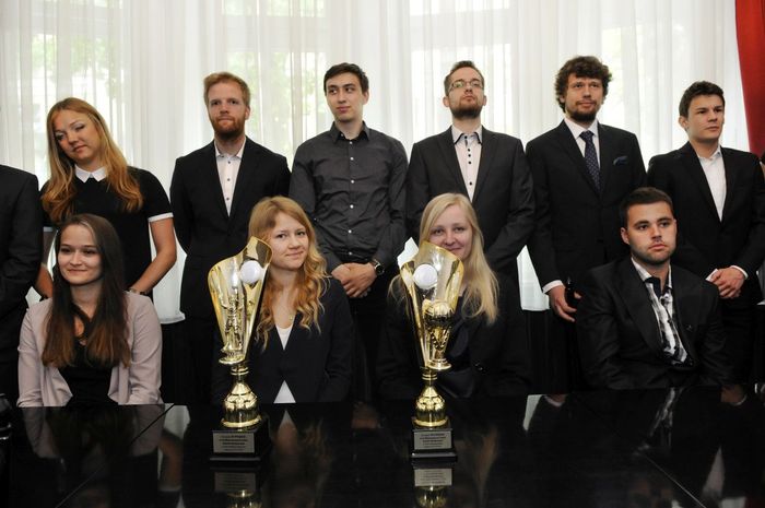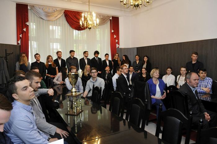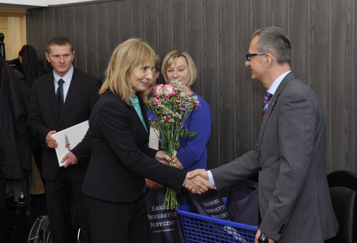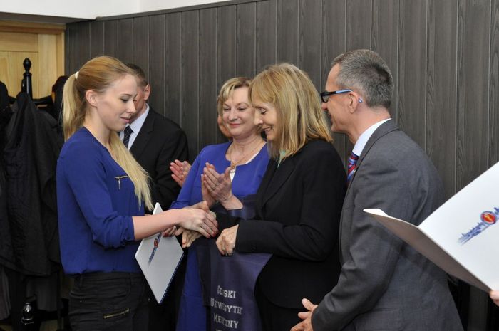Prof. Marcin Gruchała, prorektor ds. studenckich spotkał się 17 maja br. ze studentami, którzy w ostatnim czasie odnieśli sukcesy sportowe. Obecni byli piłkarze nożni, którzy wywalczyli II miejsce Mistrzostw Polski Uczelni Medycznych w Futsalu: Piotr Adamczyk (II r., ratownictwo medyczne), Błażej Borowy (IV r., kier. lekarski), Mateusz Czajkowski (absolwent), Michał Ejsmont (I r., kier. lekarski), Radosław Haberka (II r., fizjoterapia II st.), Michał Mikietyński (absolwent), Hubert Stein (VI r., kier. lekarski), Konrad Szydłowski (III r., kier. lekarski), Paweł Wiśniewski (absolwent), Bartosz Woźniak (VI r., kier. lekarski) i Michał Zapaśnik (II r., kier. lekarski). Nie zabrakło też siatkarek, które zdobyły III miejsce Mistrzostw Polski Uczelni Medycznych: Nikoli Borowej (III r., fizjoterapia I st.), Marty Dornowskiej (absolwentka), Anny Kameckiej (II r., kier. lekarski), Justyny Kowalczyk (I r., elektroradiologia), Zuzanny Łączkowskiej (I r., kier. lekarski), Weroniki Michałowskiej (I r., fizjoterapia I st.), Julii Piasty (I r., pielęgniarstwo), Eweliny Skarbek (III r., kierunek lekarski), Doroty Sobolewskiej (III r., kier. lekarski), Anny Szczoczarz (IV r. analityka medyczna), Pauliny Sztandery (VI r., kier. lekarski) i Anny Wiśniewskiej (I r., 2 stopnia, fizjoterapia) oraz siatkarzy, którzy wywalczyli II miejsce Mistrzostw Polski Uczelni Medycznych: Cezarego Bydelskiego (V r., kier. lekarski), Grzegorza Dobkowskiego (absolwent), Ziemowita Kabuły (I r., fizjoterapia II st.), Rafała Kowalczyka (V r., kier. lekarski), Kajetana Krupy (IV r., kier. lekarski), Wojciecha Lotkowskiego (VI r., farmacja), Mateusza Mociasa (I r., ratownictwo medyczne I st.), Artura Pobłockiego (III r., farmacja), Marcina Resko (I r., fizjoterapia II st.), Macieja Roga (III r., kier. lekarsko-dentystyczny), Pawła Stawickiego (V r., kier. lekarski) i Adama Szewczyka (V r., kier. lekarski). Na spotkanie przyszli także: Michał Piotrkowski, mistrz Europy w wyciskaniu sztangi leżąc (V r., kier. lekarski), Karolina Chomicz (II r., fizjoterapia), która zdobyła indywidualnie I miejsce na Akademickich Mistrzostwach Polski we Wspinaczce Sportowej oraz przedstawiciele aerobiku sportowego, którzy wywalczyli srebrny i brązowy medal – Katarzyna Przewłócka (III r., dietetyka) i Szymon Szkoda (VI r., kier. lekarski). Obecni byli także: Barbara Janda (V r., kier. lekarski), Jacek Świeczka (II r., kier. lekarski), Magdalena Paszko (II rok, fizjoterapia II st.), Marta Potrykus (I r., dietetyka I st.), Anna Rydzewska (II r., elektroradiologia I st.), którzy wywalczyli IV miejsce drużynowo na Akademickich Mistrzostwach Polski w Aerobiku Sportowym. Dotarli też pływacy, którzy zajęli III miejsce drużynowo na Akademickich Mistrzostwach Polski w Pływaniu w sztafecie 4×50 m stylem dowolnym: Jakub Akman (I r., ratownictwo medyczne), Piotr Domitrz (I r., kier. lekarski), Mikołaj Panek (I r., farmacja), Grzegorz Sadoń (IV r., kier. lekarski) oraz przedstawiciele GUMed podczas Turnieju OŚ AZS Gdańsk w Judo: Aleksandra Chorzewska (II r., k. lekarsko-dentystyczny), Aleksander Kuliński (V r., farmacja), Aleksy Świetlicki (III r., kier. lekarski) i Jakub Wójcicki (II r., kier. lekarsko-dentystyczny).