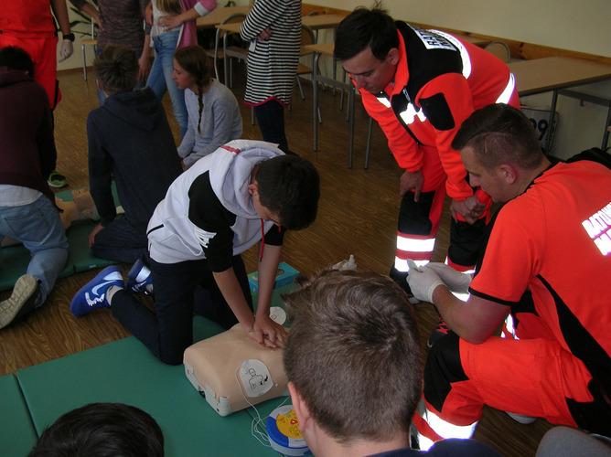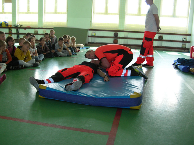 Już po raz czwarty prof. Dariusz Kozłowski z Kliniki Kardiologii i Elektroterapii Serca, w porozumieniu z dyrektorem szkoły mgr. Michałem Kaniewskim oraz instruktorem ratownictwa medycznego mgr. Andrzejem Rutem, zorganizowali i przeprowadzili 21 maja br. szkolenie z zakresu pierwszej pomocy dla uczniów Niepublicznej Szkoły Podstawowej i Gimnazjalnej im. Wandy Błeńskiej w Gdańsku-Kowalach. W szkoleniu, które odbyło się pod auspicjami pełnomocnika wojewody ds. opracowania programu kształcenia i leczenia pierwszej pomocy chorym z powodu nagłego zatrzymania krążenia – prof. Grzegorza Raczaka, udział wzięli studenci z II i III roku ratownictwa medycznego Wydziału Nauk o Zdrowiu Akademii Pomorskiej w Słupsku. Spotkanie to zapoczątkowało w województwie pomorskim cykl warsztatów edukacyjnych dotyczący udzielania pierwszej pomocy w stanach zagrożenia życia. Dlatego też na początku przedstawiono wyniki badań oceniających skuteczność reanimacji w naszym województwie i główne założenia programu szkoleniowego.