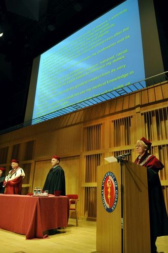 Dziewięćdziesięciu absolwentów Wydziału Lekarskiego kierunku lekarskiego anglojęzycznego rocznika 2010-2016 odebrało 20 czerwca br. swoje dyplomy z rąk rektora prof. Janusza Morysia oraz dziekan WL prof. Marii Dudziak. Dyplomatorium odbyło się w Polskiej Filharmonii Bałtyckiej im. Fryderyka Chopina. Przemówienia wygłosili m.in.: prof. Maria Dudziak – dziekan Wydziału Lekarskiego, prof. Maria Alicja Dębska-Ślizień – prodziekan Wydziału Lekarskiego, prof. Wiesław Makarewicz – wiceprezes Stowarzyszenia Absolwentów oraz Mais Tahir i Kawa Najar – absolwenci rocznika 2010-2016.