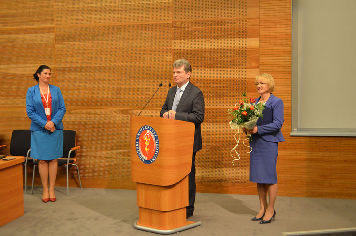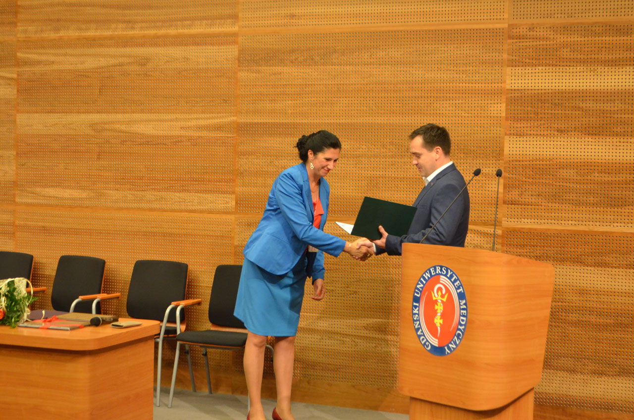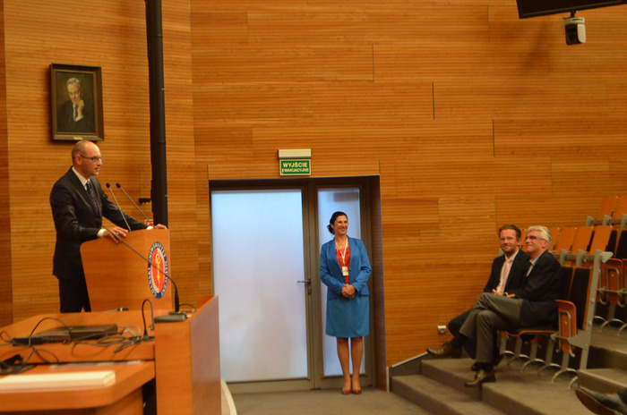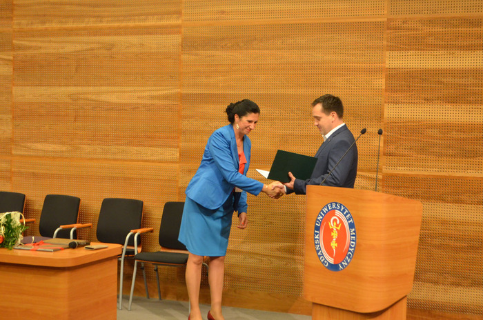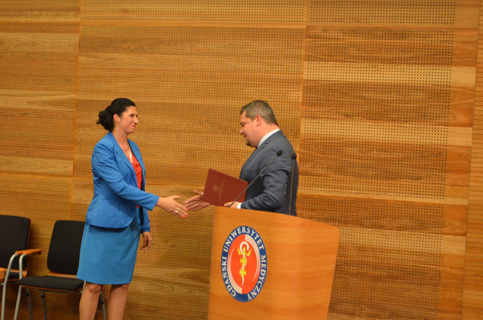 Uroczystość wręczenia certyfikatu Uniwersyteckiemu Centrum Klinicznemu odbyła się 19 września br. w Centrum Medycyny Inwazyjnej. Dyrektor naczelna UCK Ewa Książek-Bator otrzymała go z rąk Michała Bedlickiego z Centrum Monitorowania Jakości w Służbie Zdrowia w Krakowie. Certyfikat jest ukoronowaniem kilkuletnich przygotowań do wizyty akredytacyjnej, która odbyła się w UCK w dniach 2-4 marca 2016 r. W spotkaniu uczestniczyli przedstawiciele władz województwa, Uczelni, pracownicy UCK oraz dyrektorzy szpitali z regionu. W trakcie spotkania można było usłyszeć prezentacje o postrzeganiu koncepcji niezgodności i zdarzeń niepożądanych przez pracowników UCK, wyniki analizy satysfakcji naszych pacjentów, jak również ciekawą perspektywę lekarską w odniesieniu do uciążliwości przygotowań do trudnego wyzwania, jakie stanowi akredytacja.