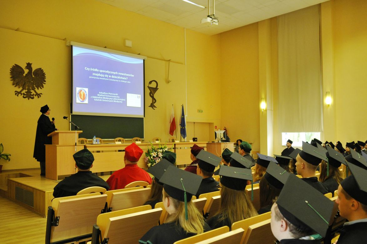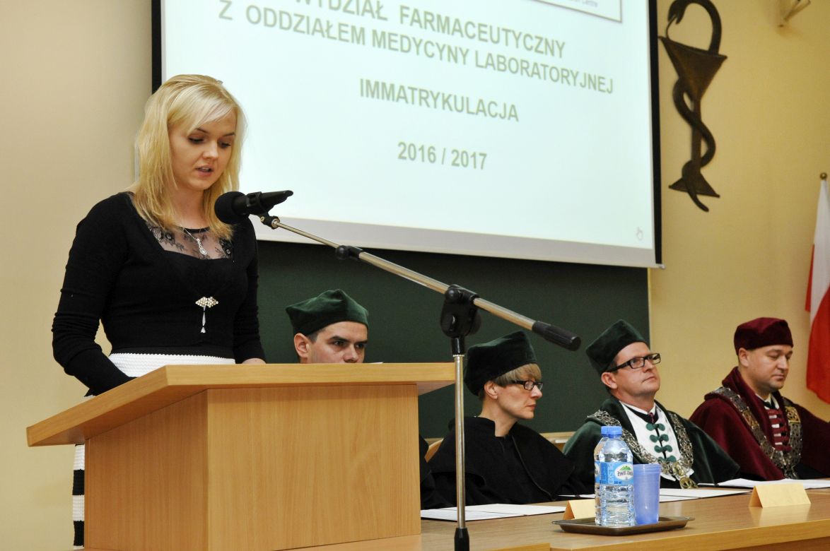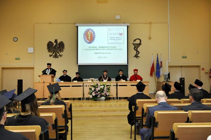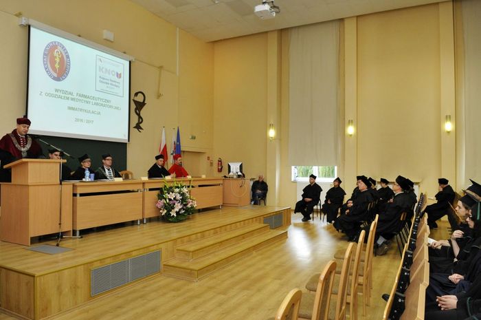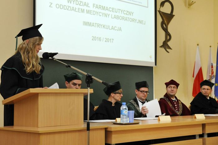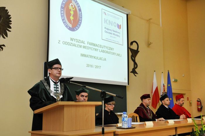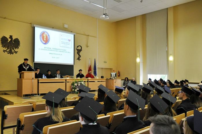 144 studentów kierunku farmacja i 49 studentów kierunku analityka medyczna pierwszego roku Wydziału Farmaceutycznego z Oddziałem Medycyny Laboratoryjnej uroczyście rozpoczęło studia. Immatrykulacja odbyła się 29 września br. w Auditorium Maximum Wydziału Farmaceutycznego z OML. Uroczystościom przewodniczył dziekan dr hab. Michał Markuszewski, prof. nadzw. Władze Uczelni reprezentował prorektor ds. nauki prof. Tomasz Bączek. Podczas immatrykulacji dr hab. Arkadiusz Piotrowski, prof. nadzw. z Katedry i Zakładu Biologii i Botaniki Farmaceutycznej wygłosił wykład inauguracyjny pt. „Czy źródła sporadycznych nowotworów znajdują się w dzieciństwie?”.