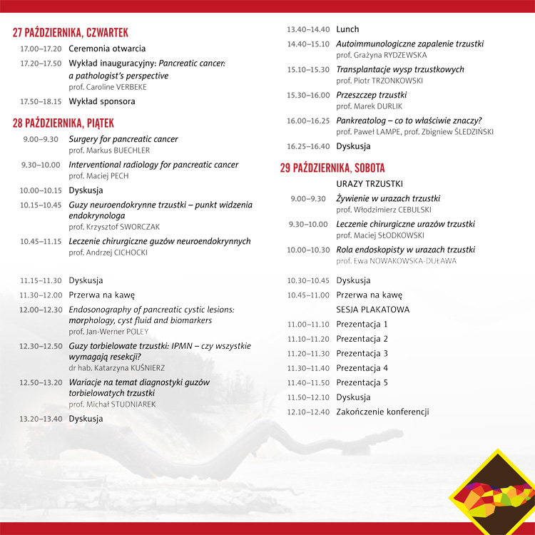 Klinika Chirurgii Ogólnej Endokrynologicznej i Transplantacyjnej, Klinika Gastroenterologii i Hepatologii GUMed oraz Oddział Chirurgii Ogólnej Szpitala im. M. Kopernika w Gdańsku organizują w dniach 27-29 października br. w Gdyni 6 Międzynarodowe Dni Trzustkowe. Udział w spotkaniu zapowiedzieli czołowi europejscy specjaliści. Wśród gości jest Caroline Verbeke z Uniwesytetu w Oslo, autorka najczęściej cytowanych prac z zakresu patologii raka trzustki, Markus Buchler, światowej sławy chirurg, wytyczający standardy leczenia operacyjnego raka trzustki, kierownik kliniki uniwersyteckiej w Heidelbergu, Jean Poley, gastroenterolog z renomowanego ośrodka gastroenterologicznego Uniwersytetu Erazma w Rotterdamie i Maciej Pech radiolog interwencyjny z Oddziału Radiologii Uniwersytetu w Magdeburgu. Studenci mają wstęp wolny za okazaniem legitymacji studenckiej.