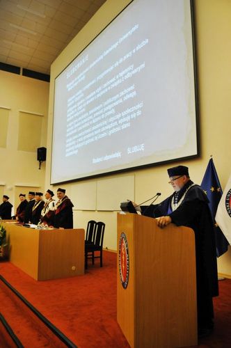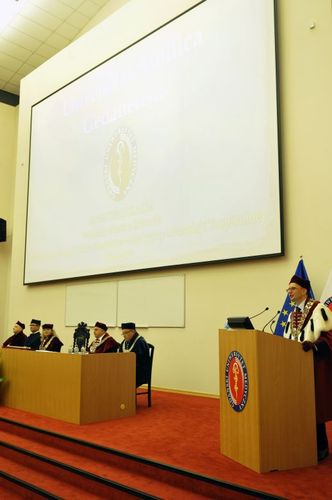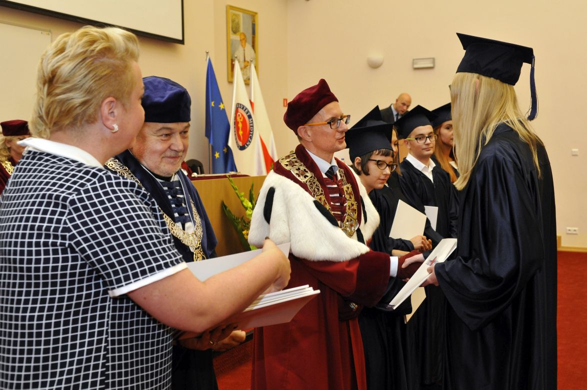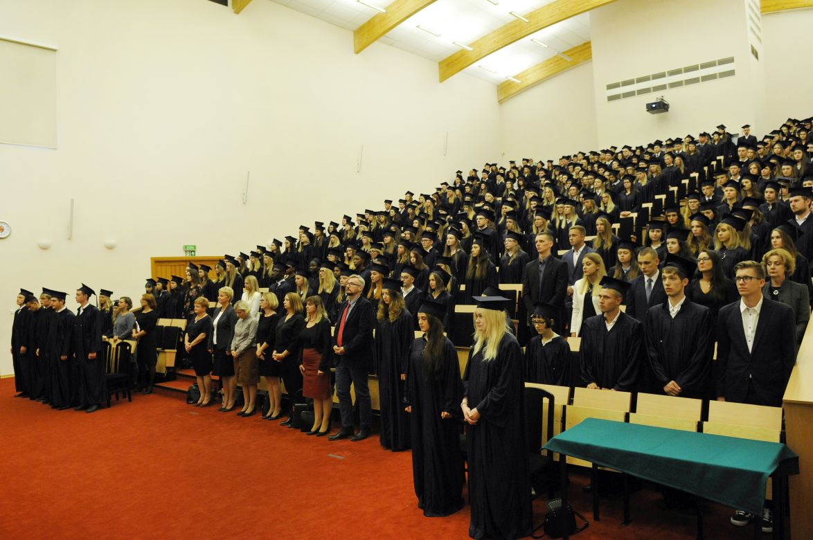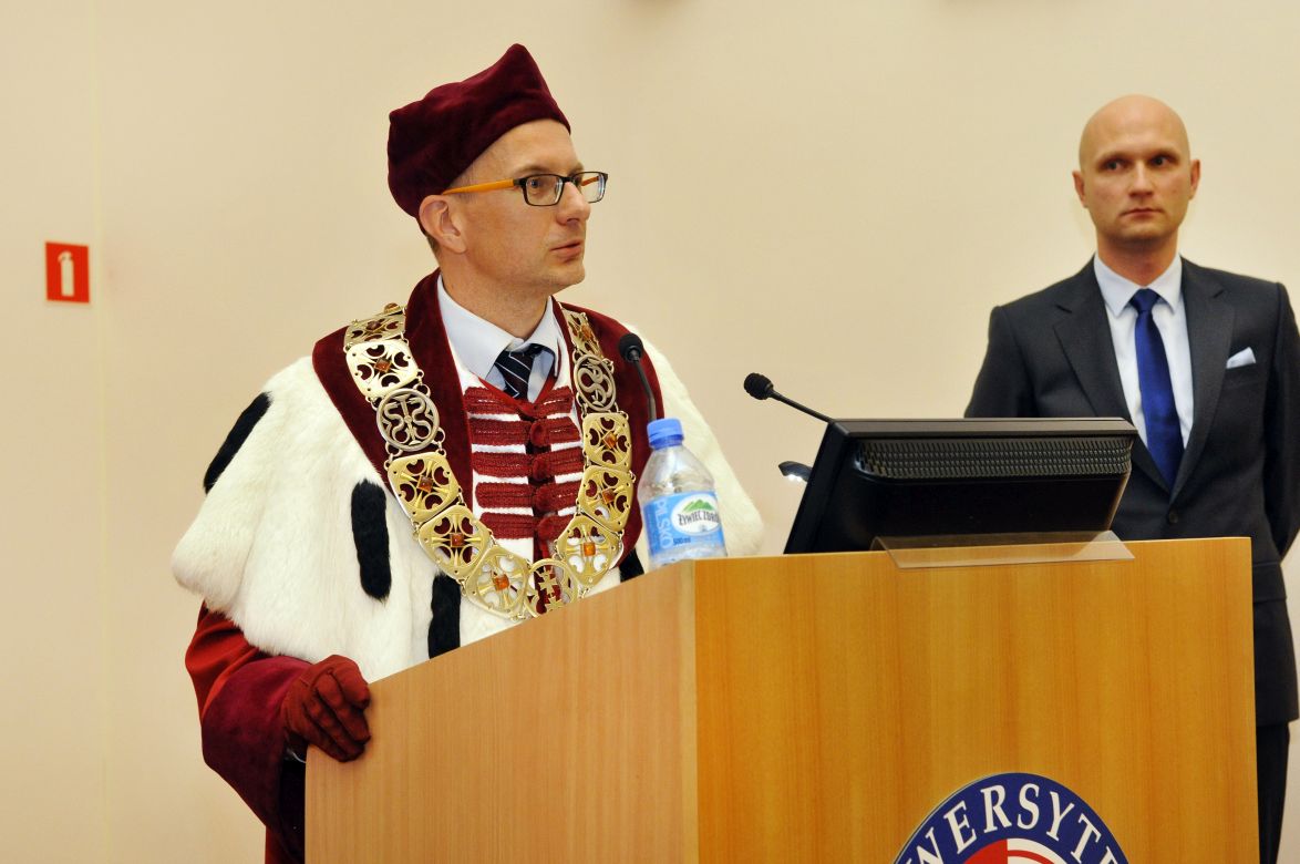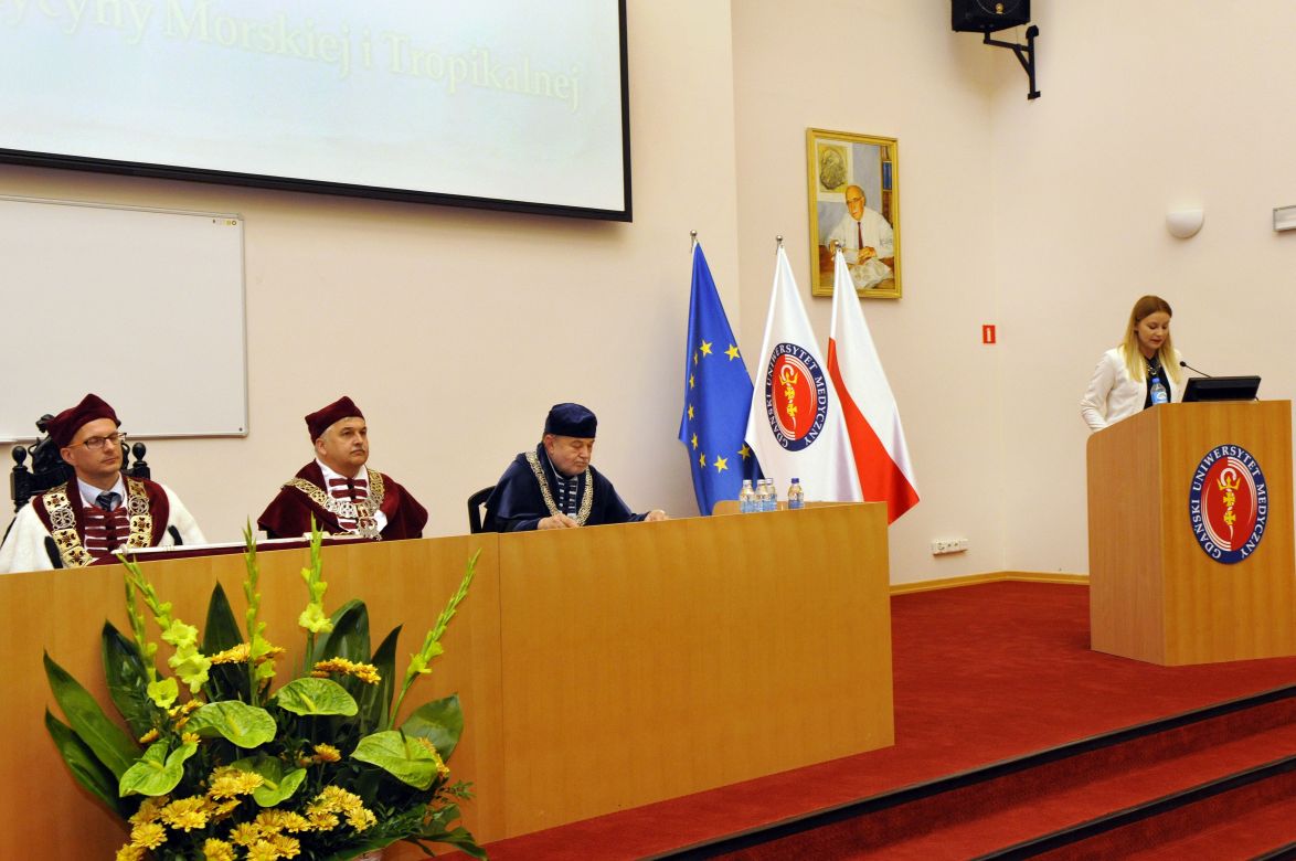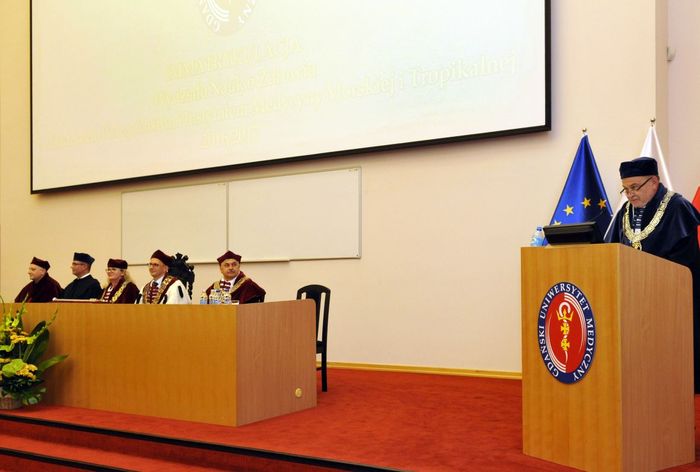 Uroczysta immatrykulacja na Wydziale Nauk o Zdrowiu odbyła się 29 września br. w Atheneum Gedanense Novum. Naukę na 9 kierunkach studiów rozpoczęło ponad 600 studentów, w tym 13 obcokrajowców. Uroczystość zaszczycili obecnością rektor prof. M. Gruchała i prof. J. Moryś, rektor kadencji 2008-2016. W immatrykulacji udział wzięli także prorektor ds. klinicznych prof. E. Szurowska, prorektor ds. studenckich dr hab. Tomasz Smiatacz, członkowie Rady Wydziału WNoZ, zaproszeni goście, opiekunowie roku, kierownicy kierunków oraz pracownicy Dziekanatu. Po odśpiewaniu hymnu państwowego głos zabrał rektor Gruchała. Serdecznie powitał wszystkich studentów, ze szczególnym uwzględnieniem rozpoczynających w tym roku po raz pierwszy naukę na anglojęzycznym pielęgniarstwie. Dziekan WNoZ prof. A. Basiński przyjął ślubowanie studentów zarówno w języku polskim, jak i angielskim. Po raz pierwszy ślubowanie składali studenci nowego kierunku – psychologii zdrowia. Następnie Rektor wraz z Dziekanem wręczyli listy gratulacyjne studentom z najlepszym wynikiem rekrutacyjnym na poszczególnych kierunkach. Uroczystość prowadził dr Daniel Ślęzak z Katedry i Kliniki Medycyny Ratunkowej.