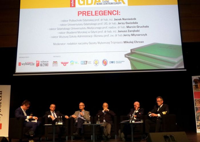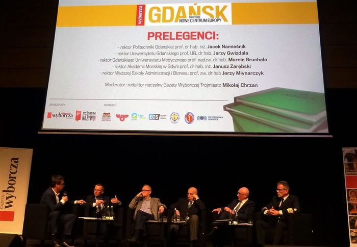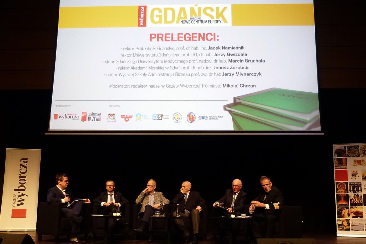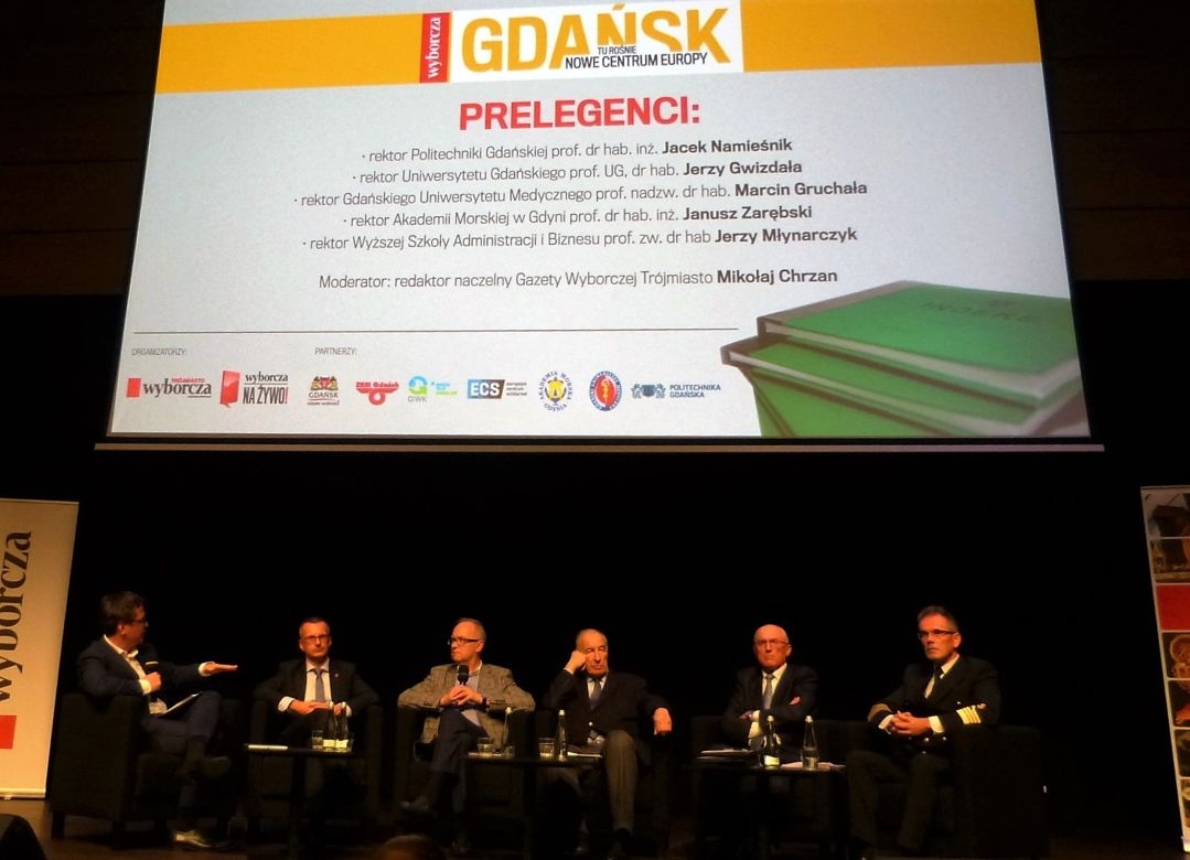 Pod hasłem “Gdańsk. Tu rośnie nowe centrum Europy” odbyła się 5 października br. pierwsza debata rektorów uczelni wyższych Pomorza. W spotkaniu udział wzięli: rektor GUMed prof. Marcin Gruchała, rektor UG prof. Jerzy Gwizdała, rektor Politechniki Gdańskiej prof. Jacek Namieśnik, rektor Akademii Morskiej w Gdyni prof. Janusz Zarębski i rektor Wyższej Szkoły Administracji i Biznesu prof. Jerzy Młynarczyk. Moderatorem był Mikołaj Chrzan, redaktor naczelny “Gazety Wyborczej Trójmiasto”.