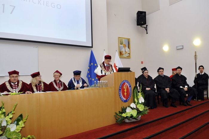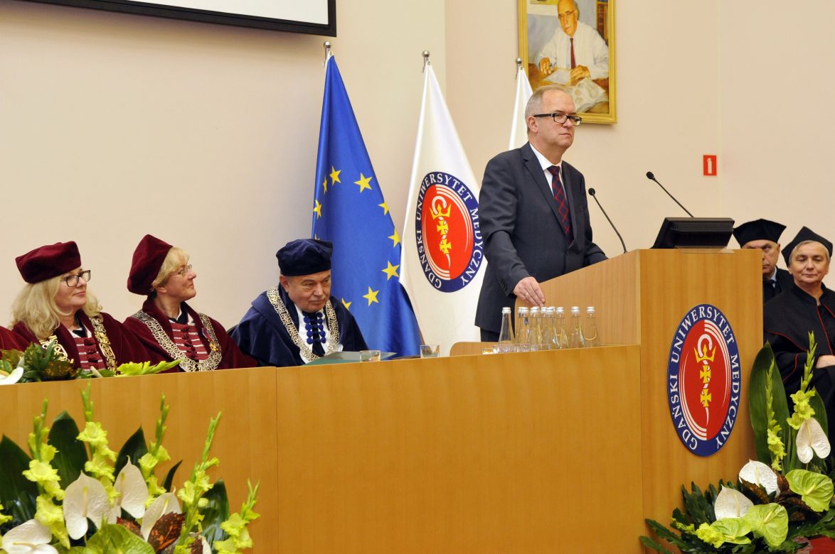 Uroczystość zaszczycili obecnością m.in. Bogdan Borusewicz, wicemarszałek Senatu; Paweł Adamowicz, prezydent Gdańska; Adam Korol, poseł; Paweł Orłowski, członek zarządu województwa pomorskiego; Dariusz Drelich, wojewoda pomorski; biskup Wiesław Szlachetka, rektorzy i prorektorzy uczelni krajowych oraz wielu gości. Rektor GUMed prof. Marcin Gruchała w swoim inauguracyjnym przemówieniu podkreślił, że przez ostatnie lata Uczelnia bardzo się zmieniła, ale nadal na wszystkich jej pracowników czekają wyzwania. – Przy współpracy opartej na wzajemnym szacunku i zaufaniu będziemy działać efektywniej – podkreślił.
