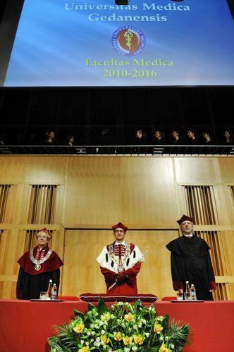 Absolwenci Wydziału Lekarskiego rocznika 2010-2016 zakończyli oficjalnie swoje studia. Dyplomatorium odbyło się 5 listopada 2016 r. w Polskiej Filharmonii Bałtyckiej im. Fryderyka Chopina. W uroczystości, której przewodniczył rektor dr hab. Marcin Gruchała, prof. nadzw. uczestniczyli m.in. dziekan WL dr hab. Maria Dudziak, prof. nadzw. i prodziekan WL dr hab. Bartłomiej Ciesielski, prof. nadzw. Rektor w swoim przemówieniu pogratulował wszystkim dyplomantom oraz życzył im dalszych sukcesów. 210 absolwentów po złożeniu przyrzeczenia lekarskiego odebrało dyplomy z rąk Rektora oraz Dziekan. Medal Primus Inter Pares otrzymał absolwent kierunku lekarskiego lek. Michał Kunc. Obok rektora Gruchały i dziekan Dudziak przemówienia wygłosili: prof. Brunon Imieliński – prezes Stowarzyszenia Absolwentów, dr Roman Budziński – prezes Okręgowej Rady Lekarskiej w Gdańsku, dr Henryk Zawadzki – opiekun studentów I roku kierunku lekarskiego i lekarsko-dentystycznego, lek. Agnieszka Czapska – absolwentka kierunku lekarskiego i Jakub Sobolewski – przedstawiciel studentów VI roku kierunku lekarskiego.
