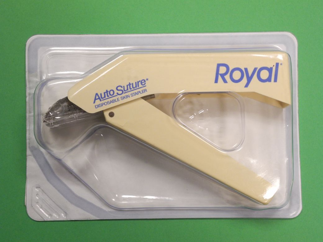 W cyklu Tajemnic z muzealnej półki przedstawiamy dziś dwa przykłady staplerów firmy AUTO SUTURE: EEA™-25 – do okrężnego szwu jelitowego i ROYAL*35W – do skóry. Zwracają uwagę daty ważności – do października 1989 r. i grudnia 2000 r. Należały do prof. Jerzego Dybickiego. Zostały przekazane wraz z innymi instrumentami i narzędziami przez Jerzego Dybickiego juniora.