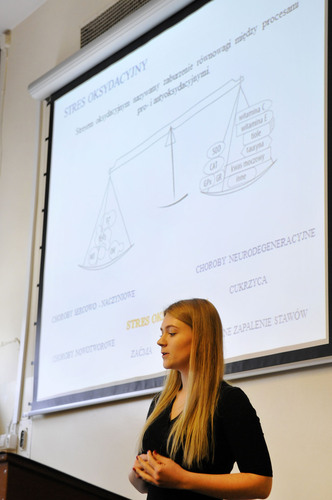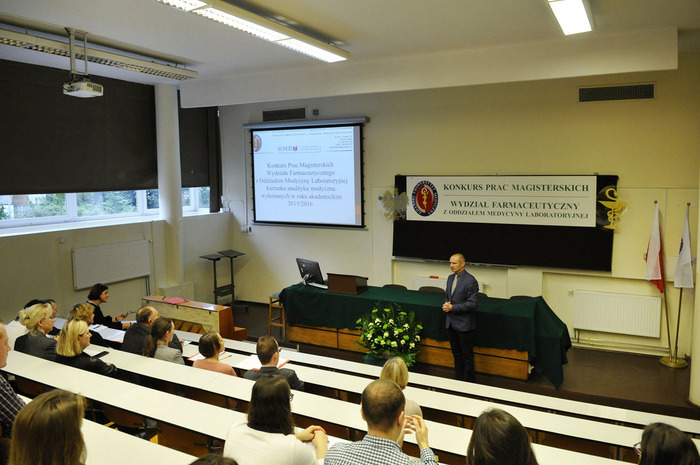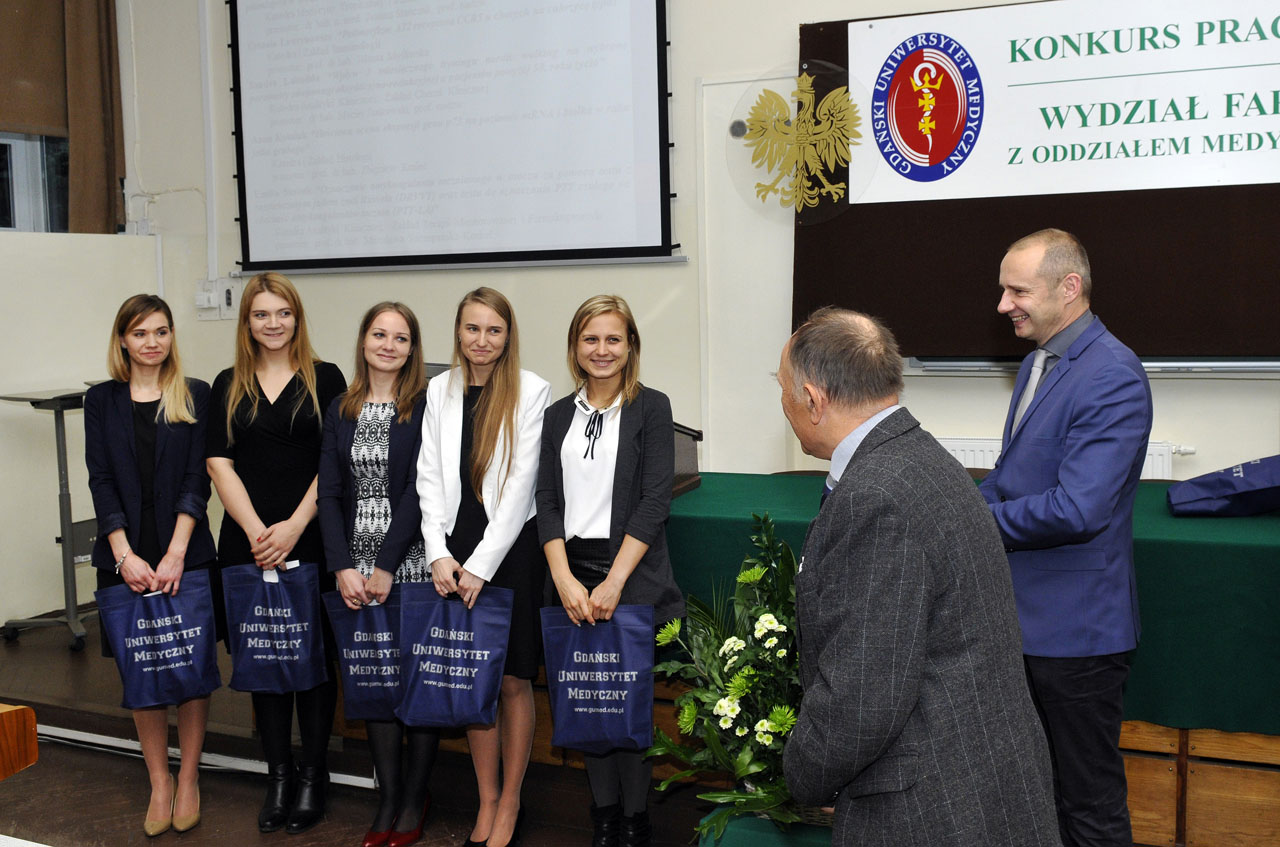 Sandra Labudda i Emila Suszek wygrały Konkurs Prac Magisterskich wykonanych na kierunku analityka medyczna w roku akademickim 2015/2016. Finał odbył się 17 listopada br. Praca Sandry Labuddy pt. „Wpływ 3-miesięcznego treningu nordic walking na wybrane parametry równowagi oksydacyjno-redukcyjnej u pacjentów powyżej 50 roku życia” była wykonana w Zakładzie Chemii Klinicznej pod kierunkiem dr. hab. Macieja Jankowskiego, prof. nadzw. i dr Agnieszki Kuchty, a prezentacja Emilii Suszek „Oznaczanie antykoagulantu toczniowego w osoczu za pomocą testu z rozcieńczonym jadem żmii (DRVVT) oraz testu do oznaczania aPTT czułego na obecność antykoagulantów tocznia (PTT-LA)” w Zakładzie Terapii Monitorowanej i Farmakogenetyki pod kierunkiem prof. Mirosławy Szczepańskiej-Konkel i dr. hab. Krzysztofa Lewandowskiego. Drugie miejsce zajęły: Patrycja Celmer za pracę pt. „Rola jeży Erinaceus europaeus w krążeniu riketsji z grupy gorączek plamistych w środowisku leśnym” przygotowaną w Zakładzie Parazytologii Tropikalnej pod kierunkiem dr hab. Joanny Stańczak, prof. nadzw. oraz Anna Kotulak za pracę pod tytułem „Ilościowa ocena ekspresji genu p73 na poziomie mRNA i białka w raku jelita grubego” wykonaną pod kierunkiem prof. Zbigniewa Kmiecia, dr. hab. inż. Piotra Wierzbickiego i dr Agaty Wrońskiej w Katedrze i Zakładzie Histologii.
