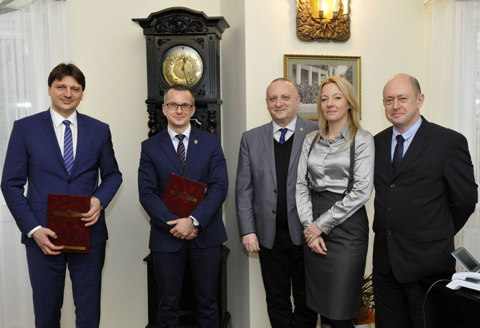 W podpisaniu umowy uczestniczyli: prof. Janusz Moryś, rektor GUMed w latach 2008-2016, kierownik Katedry Anatomii GUMed, dr Monika Waśkow, zastępca dyrektora Instytutu Nauk o Zdrowiu APSL, dr hab. Przemysław Kowiański, prof. nadzw., dyrektor Instytutu Nauk o Zdrowiu APSL.