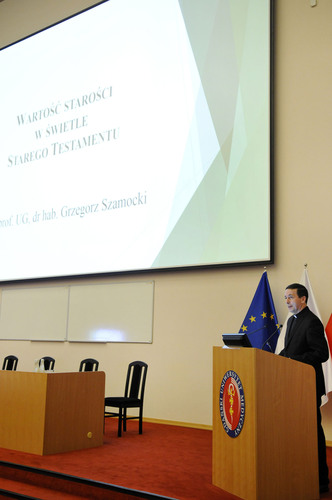 Pracownicy administracyjni Gdańskiego Uniwersytetu Medycznego 21 grudnia br. wysłuchali wykładu o starości w Starym Testamencie ks. prof. Grzegorza Szamockiego, rektora Gdańskiego Seminarium Duchownego. Spotkanie świąteczne z rektorem prof. Marcinem Gruchałą i kanclerzem Markiem Langowskim odbyło się Atheneum Gedanense Novum.