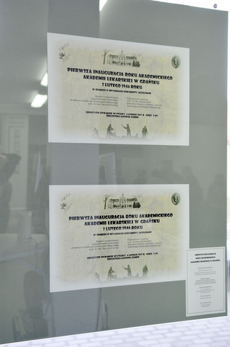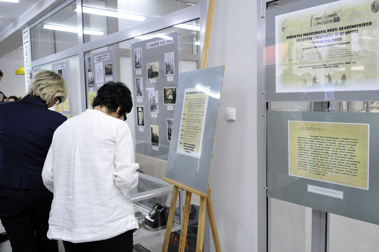 Na wystawie można obejrzeć m.in. szereg oryginalnych, unikatowych dokumentów uczelnianych obrazujących, z jaką dokładnością prowadzono prace przygotowawcze do inauguracji, która odbyła się 2 lutego 1946 r. Przywołana została sylwetka pierwszego rektora ówczesnej Akademii Lekarskiej w Gdańsku prof. Edwarda Grzegorzewskiego oraz tekst wygłoszonego przez niego przemówienia. Można zapoznać się z wybranymi listami gratulacyjnymi, które bardzo licznie wpłynęły na ręce ówczesnych władz Uczelni, a wszystko to wśród dokumentów obrazujących warunki, w jakich tuż po wojnie rozpoczynała swoją działalność Akademia Lekarska. Uzupełnieniem ekspozycji jest film, na kadrach którego zostały uwiecznione chwile i ludzie, którzy u samego zarania tworzyli historię Uczelni.