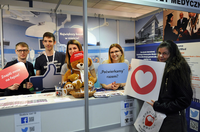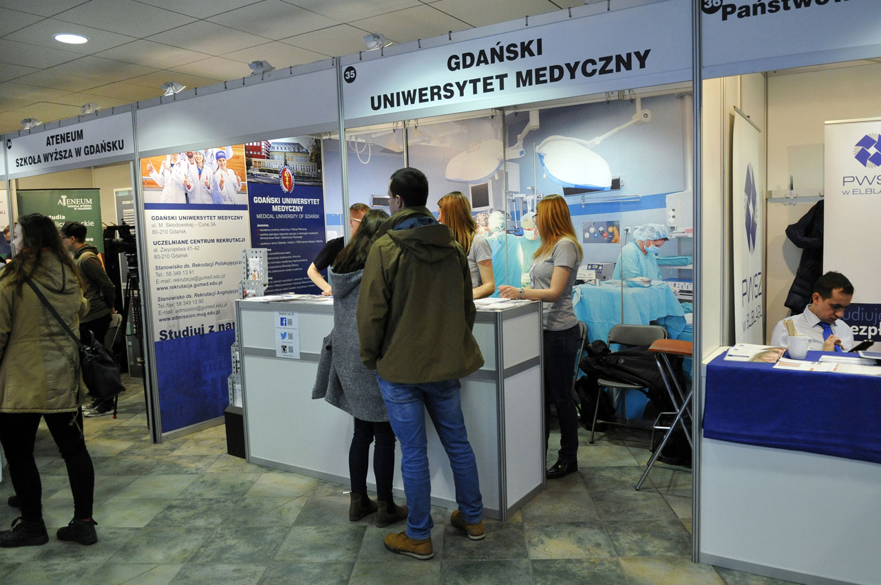 Pracownicy Uczelnianego Centrum Rekrutacji GUMed uczestniczyli w XXIII Targach Akademia – największych targach edukacyjnych na Pomorzu – które odbyły się w dniach 20-21 marca br. na Wydziale Prawa i Administracji UG (Bałtycki Kampus, Gdańsk-Oliwa). Wydarzenie stanowiło znakomitą okazję, aby poznać ofertę kształcenia przygotowaną przez Gdański Uniwersytet Medyczny oraz dowiedzieć się dlaczego warto związać swoją przyszłość z medycyną. Warto pamiętać, że uczelniana oferta edukacyjna jest regularnie poszerzana. Ponadto można było zapoznać się z działalnością kół naukowych, a także sekcji sportowych, które odnoszą sukcesy w środowisku akademickim. Osoby odwiedzające Targi Akademia mogły również zasięgnąć rad ekspertów z Okręgowej Komisji Egzaminacyjnej.
