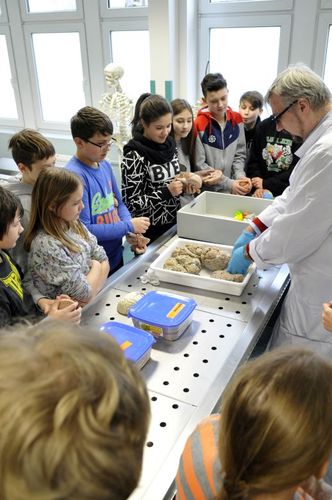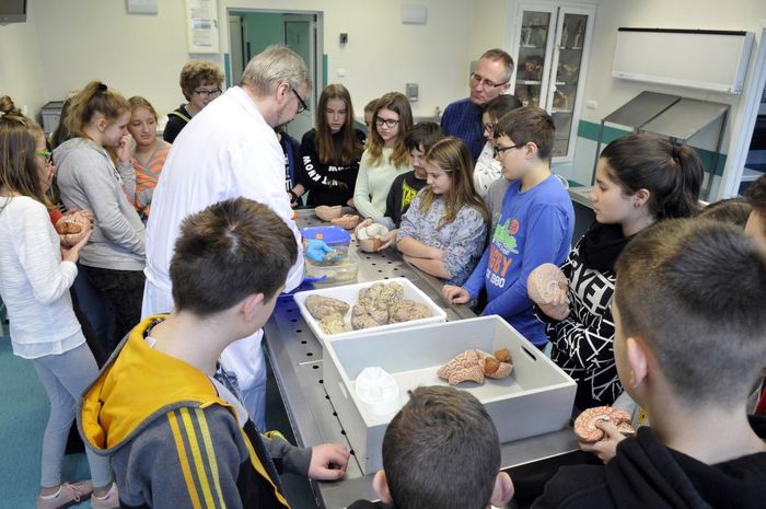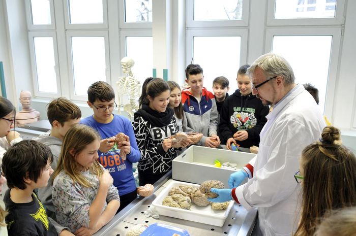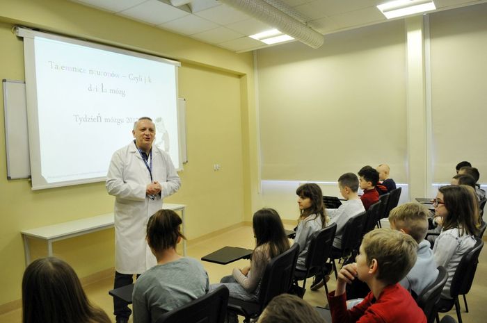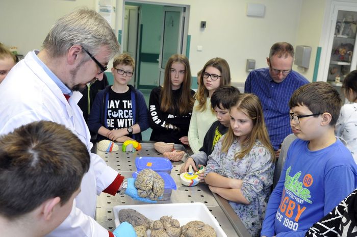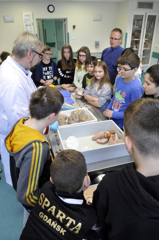 Zakład Anatomii i Neurobiologii GUMed zorganizował 20 marca 2017 r. w ramach „Dni Mózgu 2017” zajęcia dla dzieci klas V i VI Szkoły Podstawowej nr 15 im. dr Urszuli Mroczkiewicz. Spotkanie odbyło się pod patronatem Oddziału Gdańskiego Polskiego Towarzystwa Anatomicznego. Uczestników przywitał prof. Janusz Moryś, kierownik Katedry Anatomii. Uczniowie wysłuchali wykładu monograficznego dr. Sławomira Wójcika pt. „Tajemnice neuronów – czyli co się dzieje w mózgu”. Wzięli także udział w warsztatach, podczas których poznawali budowę mózgowia, a w pracowni wirtualnej rzeczywistości, pod opieką mgr Natalii Melki, mieli okazję zobaczyć jak zbudowane jest ludzkie ciało. Podsumowaniem warsztatów był konkurs wiedzy o anatomii człowieka. Najlepszą w konkursie okazała się klasa V B, której wychowawczynią jest Irmina Witkiewicz.
