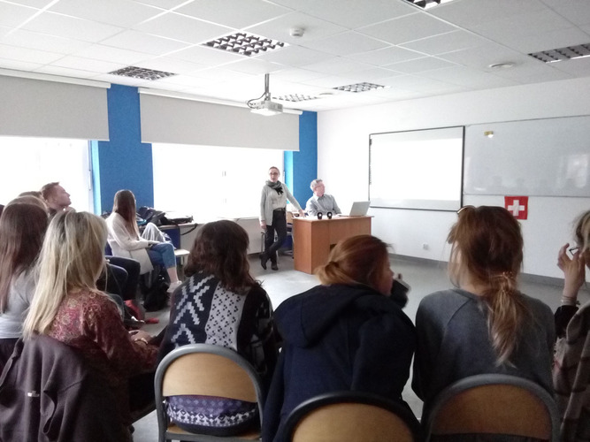 Catherine i Gabriel Meusy ze szwajcarskiego Delémont (kanton Jura) byli gośćmi Studium Praktycznej Nauki Języków Obcych GUMed. W związku ze Świętem Frankofonii zaprezentowali szwajcarski system państwowy oparty na tzw. bezpośredniej demokracji, a także bardzo zróżnicowany system zdrowotny.