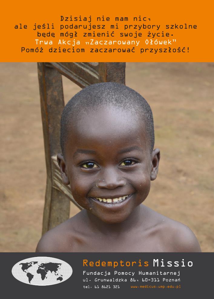 Warto się dzielić, także przyborami szkolnymi. Z takiego założenia wyszła Fundacja Redemptoris Missio i zorganizowała akcję „Zaczarowany Ołówek”. W ramach inicjatywy zbierane są artykuły i pomoce szkolne, a następnie wysyłane do najodleglejszych rejonów Afryki, gdzie mają pomóc w edukacji najmłodszych mieszkańców Czarnego Lądu. GUMed włączył się aktywnie w te działania i w dniach 10-30 kwietnia br. na terenie Uczelni odbędzie się zbiórka. Pojemniki, w których można umieszczać m.in. ołówki, długopisy, kredki, zeszyty, bloki rysunkowe, plecaki czy piórniki zostały ustawione w budynkach: Collegium Biomedicum, Centrum Medycyny Inwazyjnej, Atheneum Gedanense Novum oraz na Wydziale Farmaceutycznym.