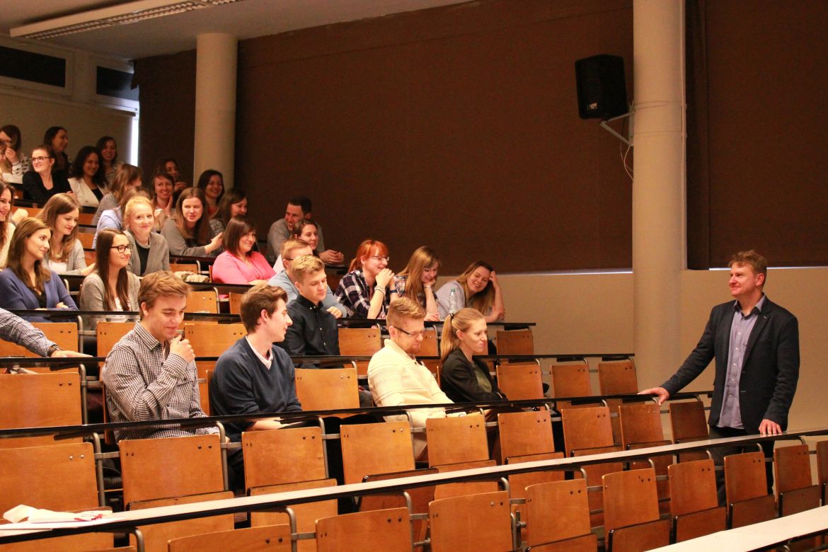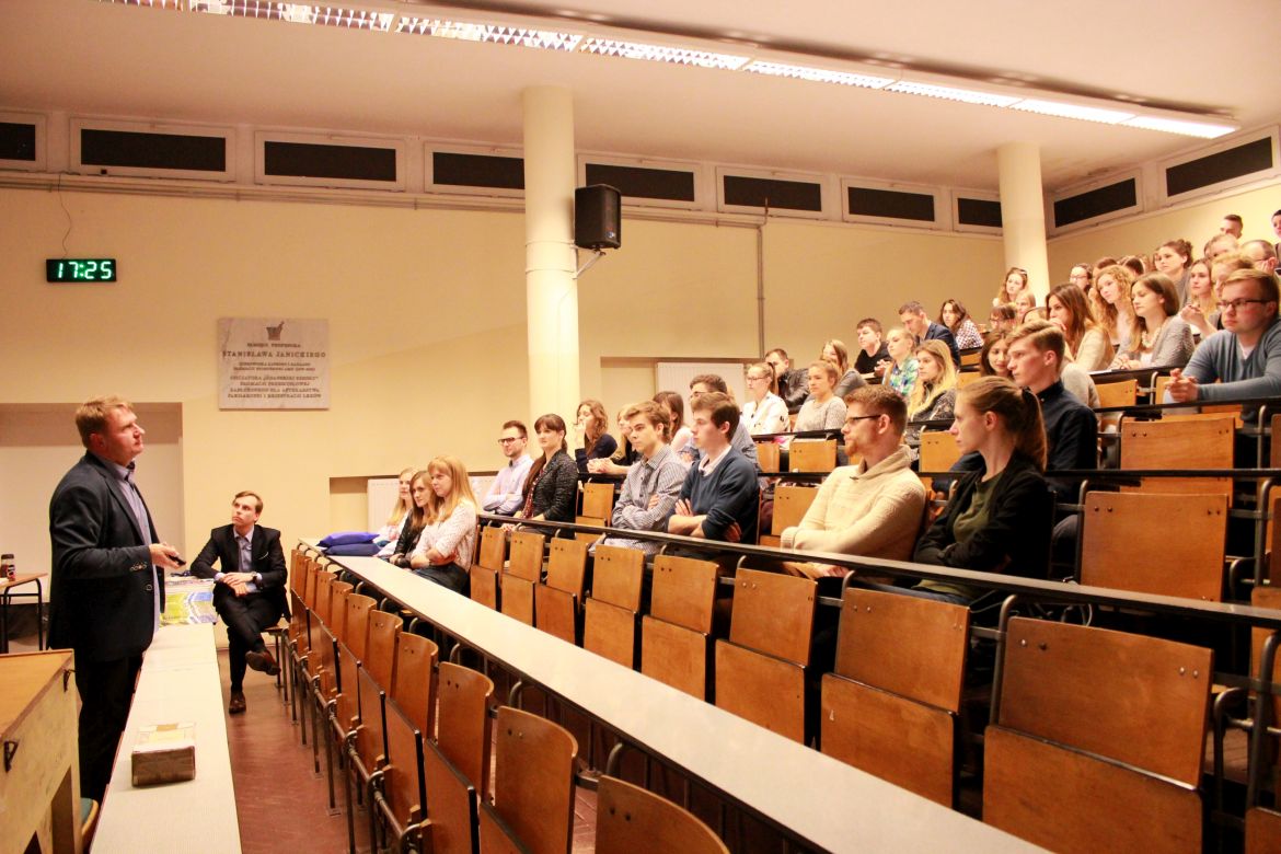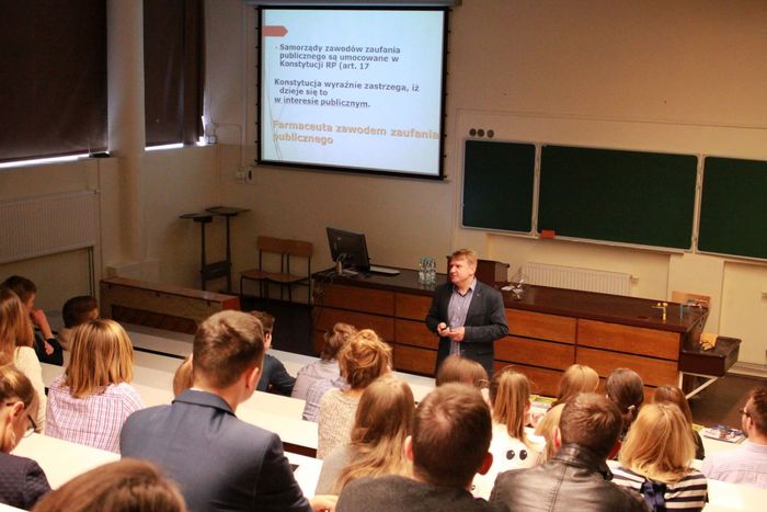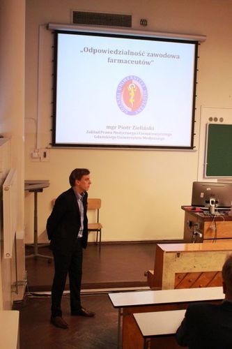 Spotkanie z cyklu „Przyszłość Farmaceuty”, którego tematem była „Apteka dla aptekarza w kontekście odpowiedzialności zawodowej” odbyło się 26 kwietnia br. na Wydziale Farmaceutycznym GUMed. Organizatorem wydarzenia byli członkowie Polskiego Towarzystwa Studentów Farmacji Oddział Gdańsk. Jego celem było zwiększenie świadomości studentów farmacji na temat aktualnej sytuacji zawodowej oraz integracja środowiska farmaceutycznego. Gośćmi spotkania byli: wiceprezes Gdańskiej Okręgowej Izby Aptekarskiej dr Piotr Migas, który opowiedział o zmianach, jakie nastąpią po wprowadzeniu ustawy „Apteka dla aptekarza” zarówno dla farmaceutów, jak i dla pacjentów z punktu widzenia Naczelnej Rady Aptekarskiej i samego farmaceuty oraz przedstawiciel Zakładu Prawa Medycznego i Farmaceutycznego GUMed mgr prawa Piotr Zieliński, który przybliżył temat odpowiedzialności zawodowej w zawodzie farmaceuty. Uświadomił także słuchaczom jakie mogą być konsekwencje błędów czy zaniedbań ze strony aptekarza z punktu widzenia prawnego.