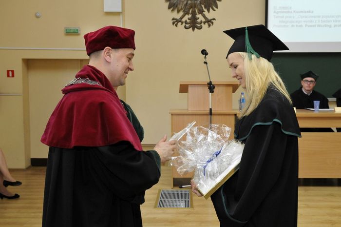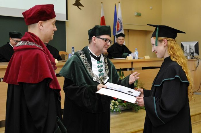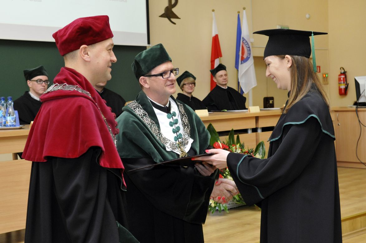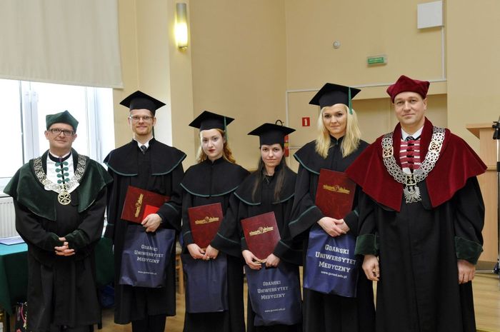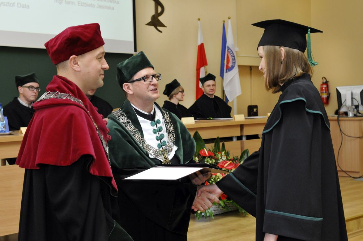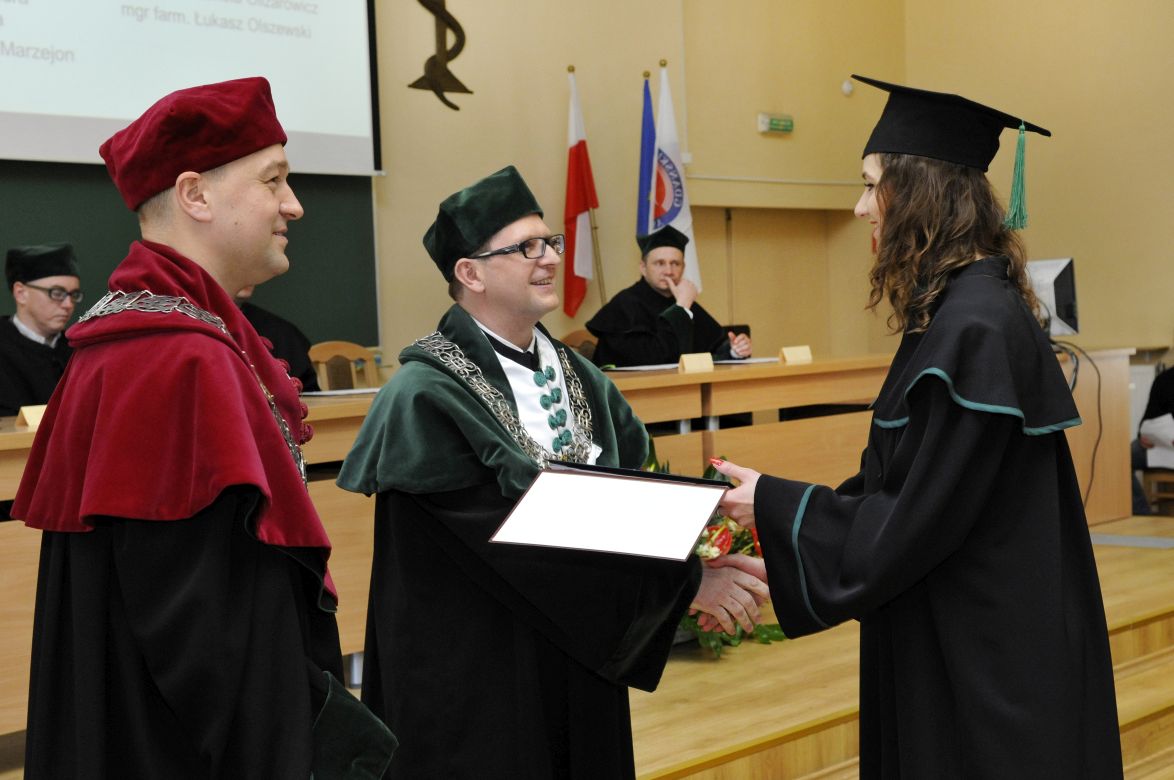 Po przemówieniach Prorektora ds. nauki i Dziekana 82 absolwentów złożyło przyrzeczenie i odebrało dyplomy. Wyróżniającym się absolwentom wręczono listy gratulacyjne i nagrody książkowe ufundowane przez Gdańską Okręgową Izbę Aptekarską. Za wyniki w nauce nagrodzono: Adriana Szewczyka – laureata medalu Primus Inter Pares, Paulinę Włodarską, Annę Zalińską i Elżbietę Jasińską. Natomiast za działalność na rzecz społeczności akademickiej wyróżniono Natalię Rączkę. Ponadto Adrian Szewczyk odebrał nagrodę im. prof. Stanisława Janickiego ufundowaną przez Gdańską Okręgową Izbę Aptekarską. Wręczyli ją: Małgorzata Janicka, córka prof. S. Janickiego i prezes GOIA dr Paweł Chrzan.