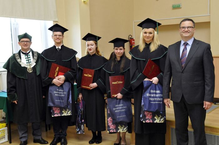 Dziekan prof. Michał Markuszewski oraz prezes Oddziału Gdańskiego Polskiego Towarzystwa Farmaceutycznego prof. Piotr Kowalski wręczyli nagrody laureatom Wydziałowego Konkursu Prac Magisterskich na kierunku farmacja. Nagrody ufundowane przez Oddział Gdański PTFarm i Dziekana WF z OML otrzymali: