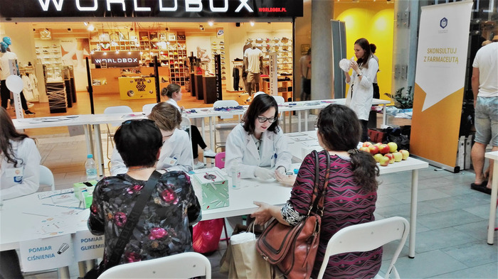 Każdy zainteresowany mógł dowiedzieć się paru rzeczy na temat prawidłowego przygotowania do badań oraz kim jest diagnosta laboratoryjny. Chętni mogli zbadać poziom glukozy w krwi, ciśnienie, wilgotność naskórka oraz wykonać analizę składu ciała, w tym zawartość tkanki tłuszczowej i skonsultować się z przyszłymi farmaceutami.