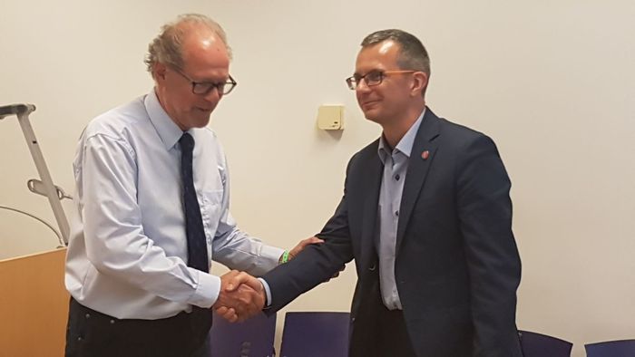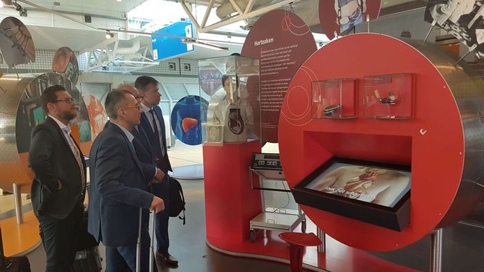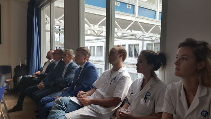 Przedstawiciele Gdańskiego Uniwersytetu Medycznego odwiedzili w dniach 30-31 maja br. Uniwersyteckie Centrum Medyczne w Utrechcie (UMCU) w Holandii. W skład delegacji weszli: rektor prof. Marcin Gruchała, prorektor ds. rozwoju i organizacji kształcenia prof. Jacek Bigda, prorektor ds. studenckich dr hab. Tomasz Smiatacz, kanclerz Marek Langowski, dr Krzysztof Chlebus, prezes Centrum Innowacji Medycznych GUMed, dr Karolina Dorniak z Zakładu Diagnostyki Chorób Serca, prof. Marcin Fijałkowski z I Katedry i Kliniki Kardiologii, prof. Jacek Jassem, kierownik Katedry i Kliniki Onkologii i Radioterapii, prof. Krzysztof Narkiewicz, kierownik Katedry i Kliniki Nadciśnienia Tętniczego i Diabetologii, dr hab. Rafał Pawlaczyk z Katedry i Kliniki Kardiochirurgii i Chirurgii Naczyniowej oraz prof. Aleksandra Żurowska, kierownik Katedry i Kliniki Pediatrii, Nefrologii i Nadciśnienia. Gospodarzem spotkania był prof. Paul F. Grundeman z UMCU, który 7 marca br. odwiedził GUMed. Dwudniowa wizyta w Utrechcie była okazją do wymiany doświadczeń, omówienia bieżących kwestii związanych z ochroną zdrowia, jak również edukacją czy innowacjami medycznymi. Podczas spotkania omówiono również potencjalne przedsięwzięcia, które w przyszłości mogą realizować wspólnie ośrodki z Gdańska i Utrechtu.