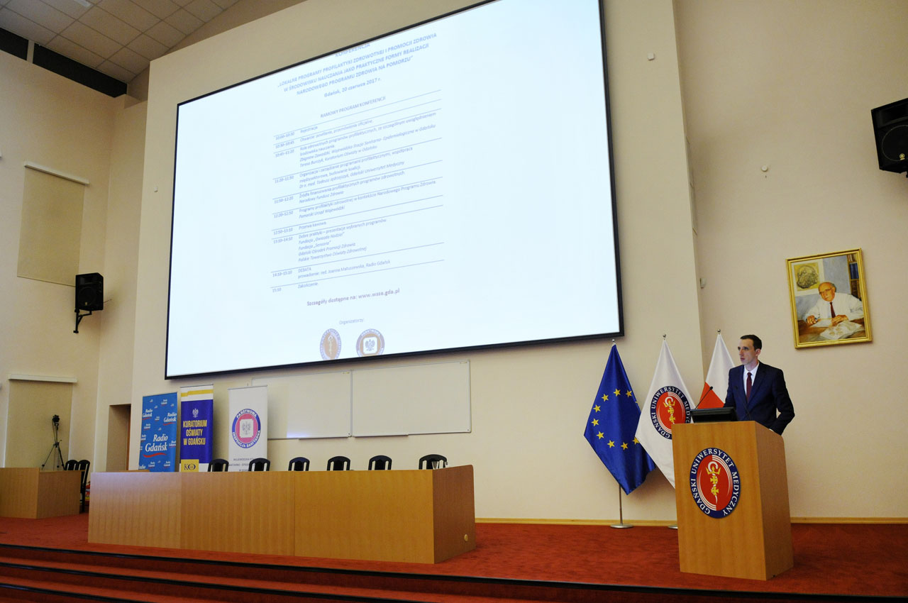 „Lokalne programy profilaktyki zdrowotnej i promocji zdrowia w środowisku nauczania jako praktyczne formy realizacji Narodowego Programu Zdrowia na Pomorzu” to tytuł konferencji, którą 20 czerwca br. zorganizował Gdański Uniwersytet Medyczny i Pomorski Państwowy Wojewódzki Inspektor Sanitarny. W spotkaniu udział wzięli pracownicy uczelni wyższych, szkół wszystkich szczebli i administracji samorządowej. Honorowy patronat nad wydarzeniem objęli Główny Inspektor Sanitarny, Wojewoda Pomorski oraz Pomorski Kurator Oświaty. Patronem medialnym było współpracujące z naszą Uczelnią Radio Gdańsk.