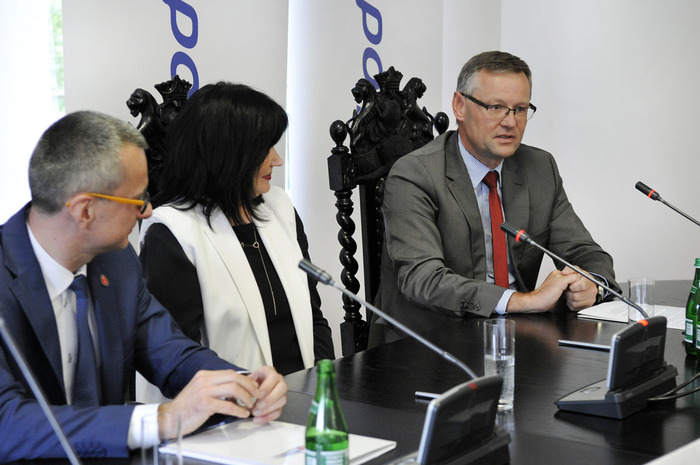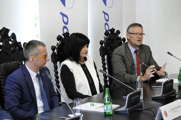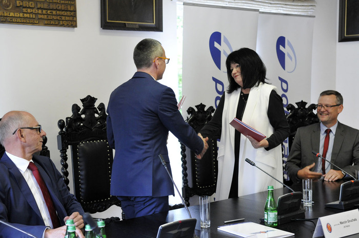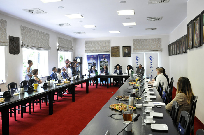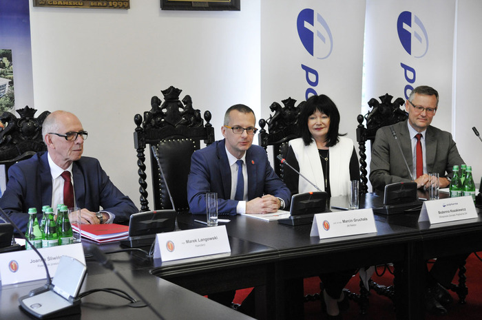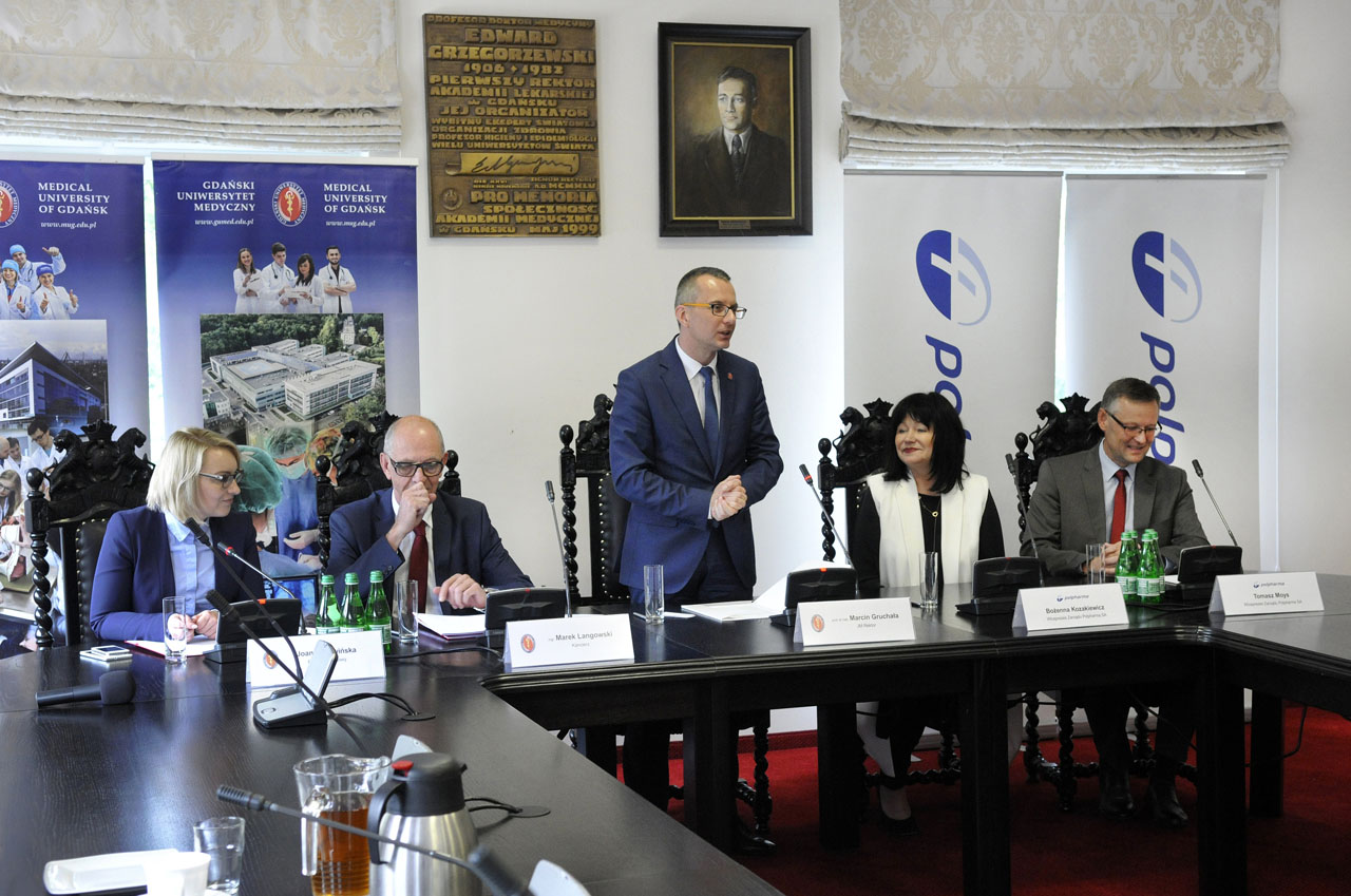 Przemysł farmaceutyczny i kosmetyczny – to nazwa nowego kierunku studiów utworzonego przez Gdański Uniwersytet Medyczny we współpracy z Zakładami Farmaceutycznymi Polpharma SA. Te unikalne w skali kraju studia oparte o tzw. profil praktyczny i kształcenie dualne, łączą edukację teoretyczną z praktyką przemysłową. Podczas konferencji, która odbyła się 7 lipca br. w Gdańskim Uniwersytecie Medycznym, podpisano stosowne umowy. W spotkaniu udział wzięli: prof. dr hab. Marcin Gruchała – rektor GUMed, mgr Marek Langowski – kanclerz GUMed, prof. dr hab. Michał Markuszewski – dziekan Wydziału Farmaceutycznego z Oddziałem Medycyny Laboratoryjnej GUMed, Bożenna Kozakiewicz – wiceprezes Zarządu Polpharma SA odpowiedzialna za badania i rozwój oraz Tomasz Moys – wiceprezes Zarządu Polpharma SA odpowiedzialny za obszar operacji przemysłowych. Obecni byli również prof. dr hab. Małgorzata Sznitowska – kierownik Katedry i Zakładu Farmacji Stosowanej GUMed oraz dr Paweł Pietkiewicz – szef Polpharmy ds. rozwoju procesu i technologii.