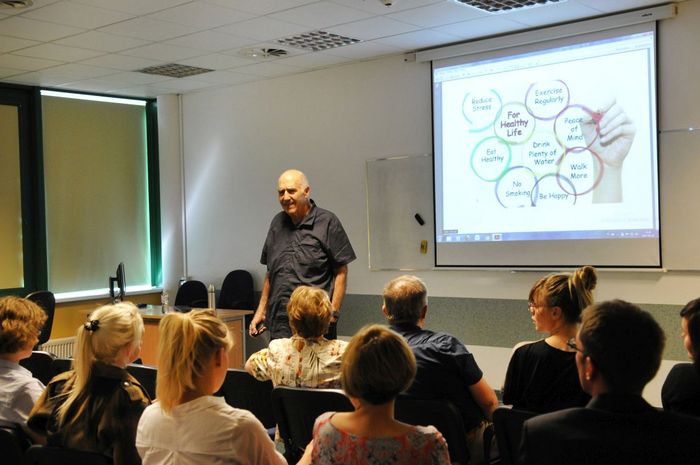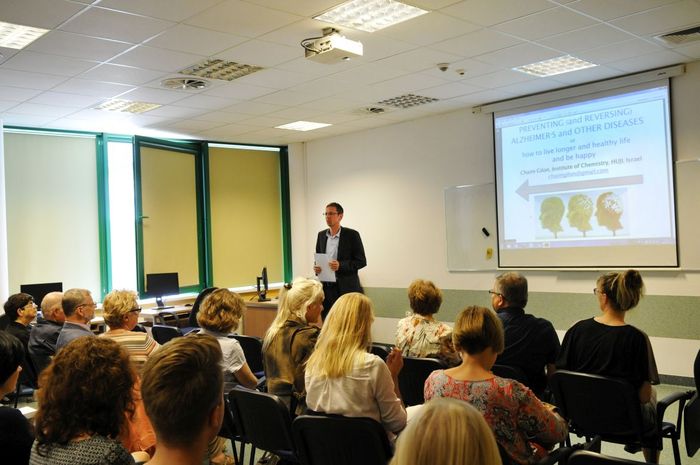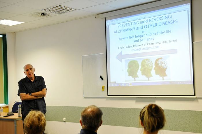 Prof. Chaim Gilon z Instytutu Chemii na Uniwersytecie Hebrajskim w Jerozolimie był gościem Gdańskiego Oddziału Polskiego Towarzystwa Immunologii Doświadczalnej i Klinicznej oraz Zakładu Immunologii Klinicznej i Transplantologii GUMed. W ramach wizyty Profesor wygłosił wykład pt. “Preventing (and reversing) Alzheimer’s and other diseases or how to live longer and healthy life and be happy”.