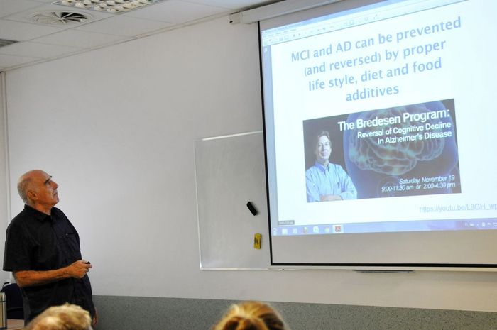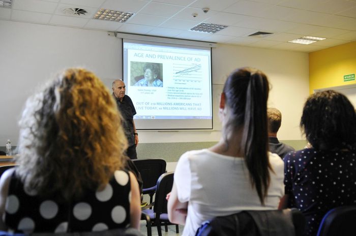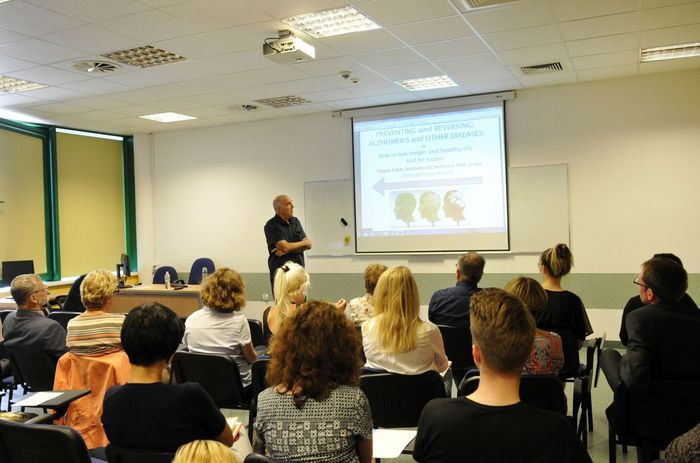 Profesor w swojej prezentacji poruszył zagadnienia dotyczące wykrywania mechanizmu wywołującego chorobę Alzheimera oraz zapobiegania chorobie – zdrowemu trybowi życia oraz diecie. Po wykładzie słuchacze wzięli udział w dyskusji, w której Profesor odpowiedział na ich konkretne pytania.
