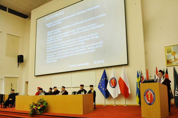Za nami uroczystości immatrykulacji studentów I roku Wydziału Lekarskiego w roku akademickim 2017/2018. Swoją przygodę z medycyną rozpoczęli studenci kierunku lekarskiego, lekarsko-dentystycznego oraz technik dentystycznych. W trakcie uroczystości, które odbyły się w dniach 28-29.09. br. obecni byli przedstawiciele władz uczelni, w tym rektor GUMed prof. Marcin Gruchała, prorektor ds. studenckich dr hab. Tomasz Smiatacz oraz dziekan Wydziału Lekarskiego dr hab. Maria Dudziak.