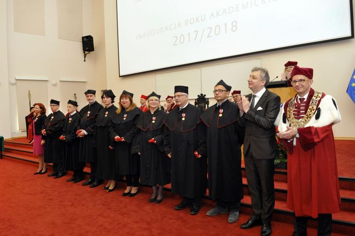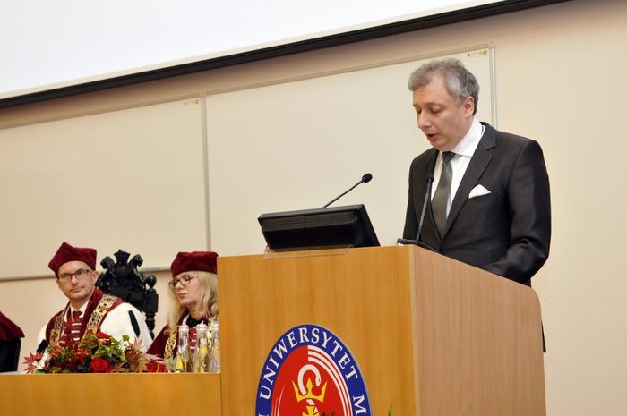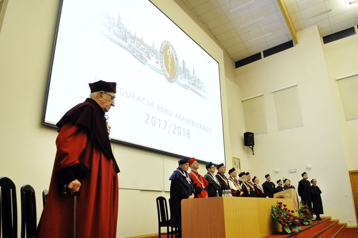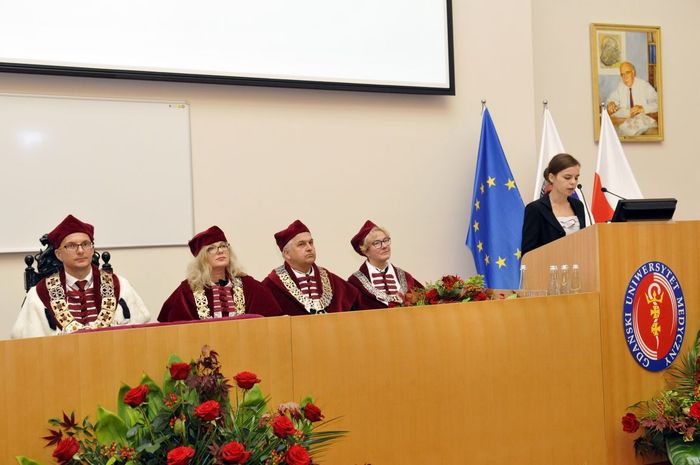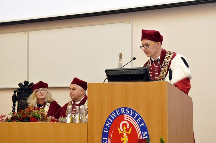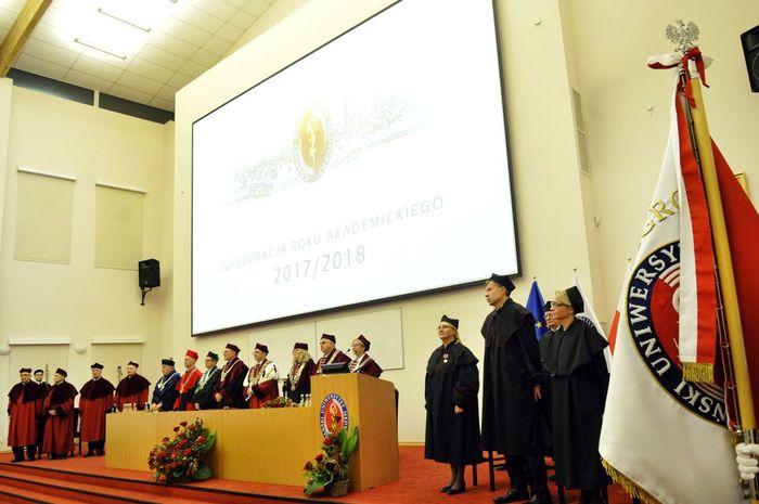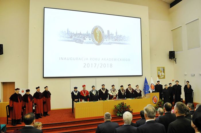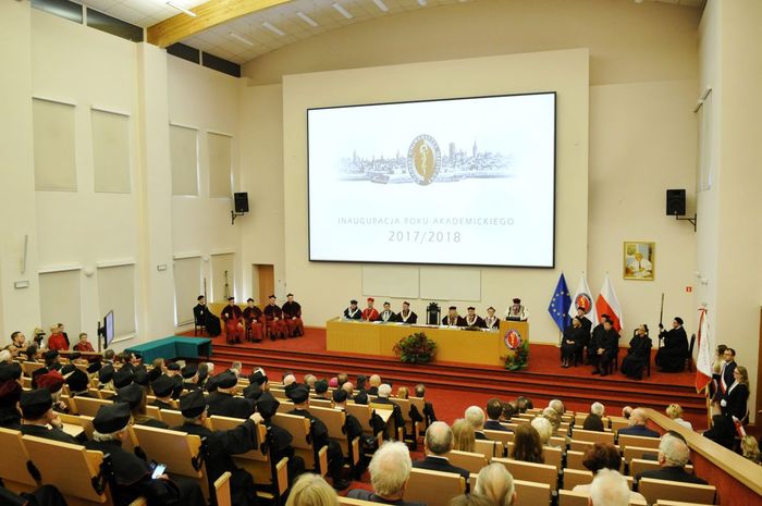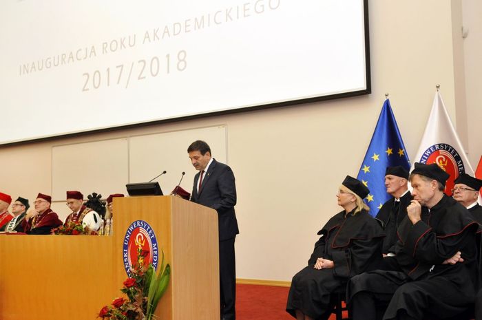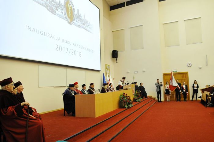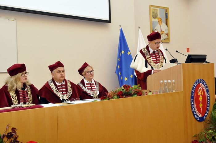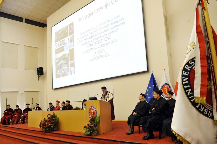 Rektor GUMed prof. Marcin Gruchała w swoim przemówieniu podkreślił, że Uczelnia, znajduje się wysoko w polskich rankingach edukacyjnych, a liczba chętnych do podjęcia studiów jest nadal bardzo wysoka co stanowi o prestiżu, ale także o przypomina o wyzwaniach jakie są z tym związane. Prof. Gruchała zaznaczył fakt zmian jakie w ostatnich latach zaszły w infrastrukturze GUMed: powstanie Centrum Medycyny Inwazyjnej i Centrum Symulacji Medycznej, czy budowa Centrum Medycyny Nieinwazyjnej oraz rozpoczęcie prac nad Centrum Sportu. Podkreślił także fakt, że trwają starania o utworzenie w strukturze Uniwersyteckiego Centrum Klinicznego Centrum Medycyny Pediatrycznej. Pierwszym etapem przedsięwzięcia ma być otwarcie nowoczesnego Oddziału Intensywnej Terapii Dziecięcej stwarzającej zupełnie nowe możliwości w leczeniu młodych pacjentów. Nie zabrakło także informacji o powołaniu Biura Projektów, które ma być odpowiedzią na ogromny potencjał naukowy GUMed, który jeszcze nie został w pełni wykorzystany.