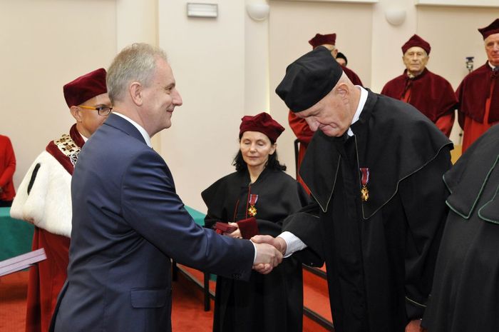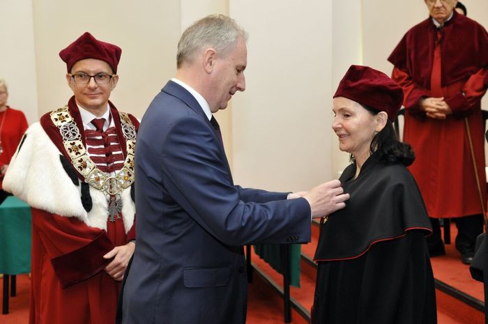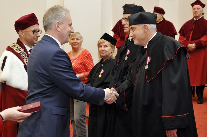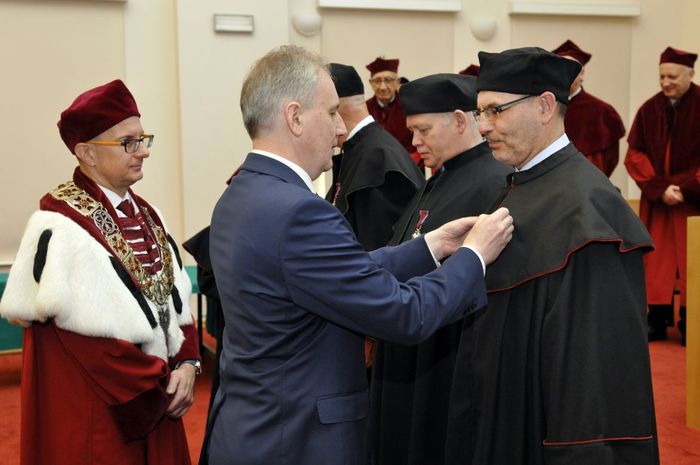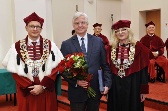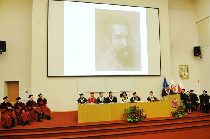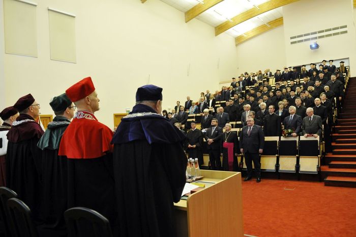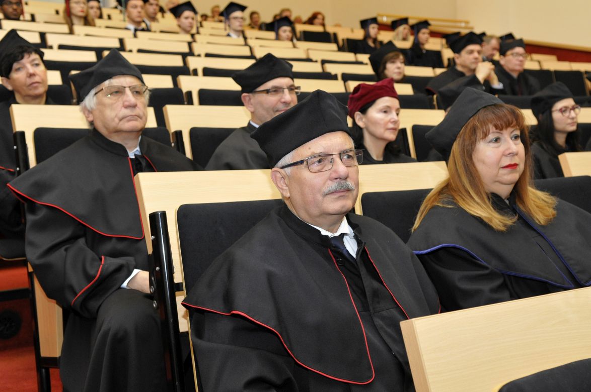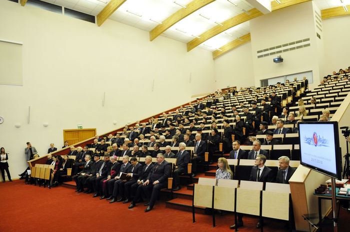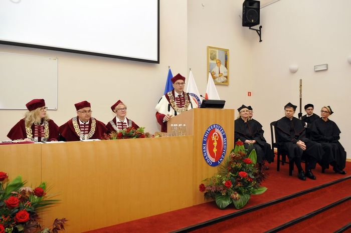 Rektor GUMed prof. Marcin Gruchała w swoim przemówieniu podkreślił, że Uczelnia, znajduje się wysoko w polskich rankingach edukacyjnych, a liczba chętnych do podjęcia studiów jest nadal bardzo wysoka co stanowi o prestiżu, ale także o przypomina o wyzwaniach jakie są z tym związane. Prof. Gruchała zaznaczył fakt zmian jakie w ostatnich latach zaszły w infrastrukturze GUMed: powstanie Centrum Medycyny Inwazyjnej i Centrum Symulacji Medycznej, czy budowa Centrum Medycyny Nieinwazyjnej oraz rozpoczęcie prac nad Centrum Sportu. Podkreślił także fakt, że trwają starania o utworzenie w strukturze Uniwersyteckiego Centrum Klinicznego Centrum Medycyny Pediatrycznej. Pierwszym etapem przedsięwzięcia ma być otwarcie nowoczesnego Oddziału Intensywnej Terapii Dziecięcej stwarzającej zupełnie nowe możliwości w leczeniu młodych pacjentów. Nie zabrakło także informacji o powołaniu Biura Projektów, które ma być odpowiedzią na ogromny potencjał naukowy GUMed, który jeszcze nie został w pełni wykorzystany.