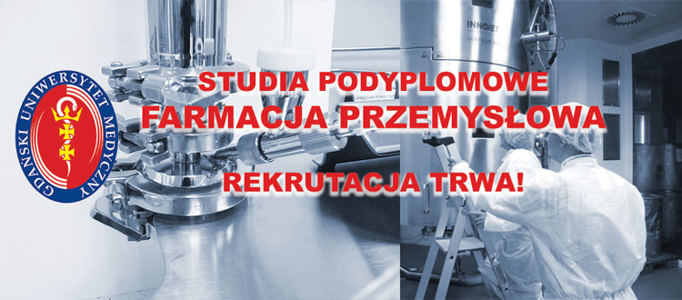 GUMed prowadzi kształcenie podyplomowe w zakresie farmacji przemysłowej od 1999 roku. Zajęcia odbywają się w systemie weekendowym (piątek, sobota) w Gdańsku i w Warszawie. Aktualna rekrutacja trwa do 15 stycznia 2018 roku (zajęcia rozpoczynają się w styczniu/lutym 2018).