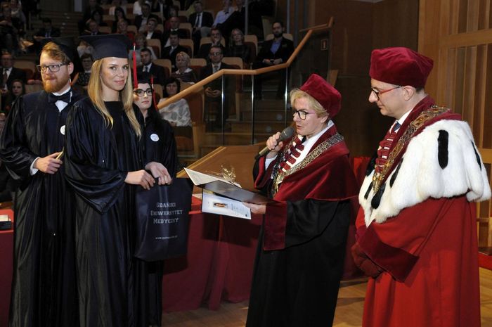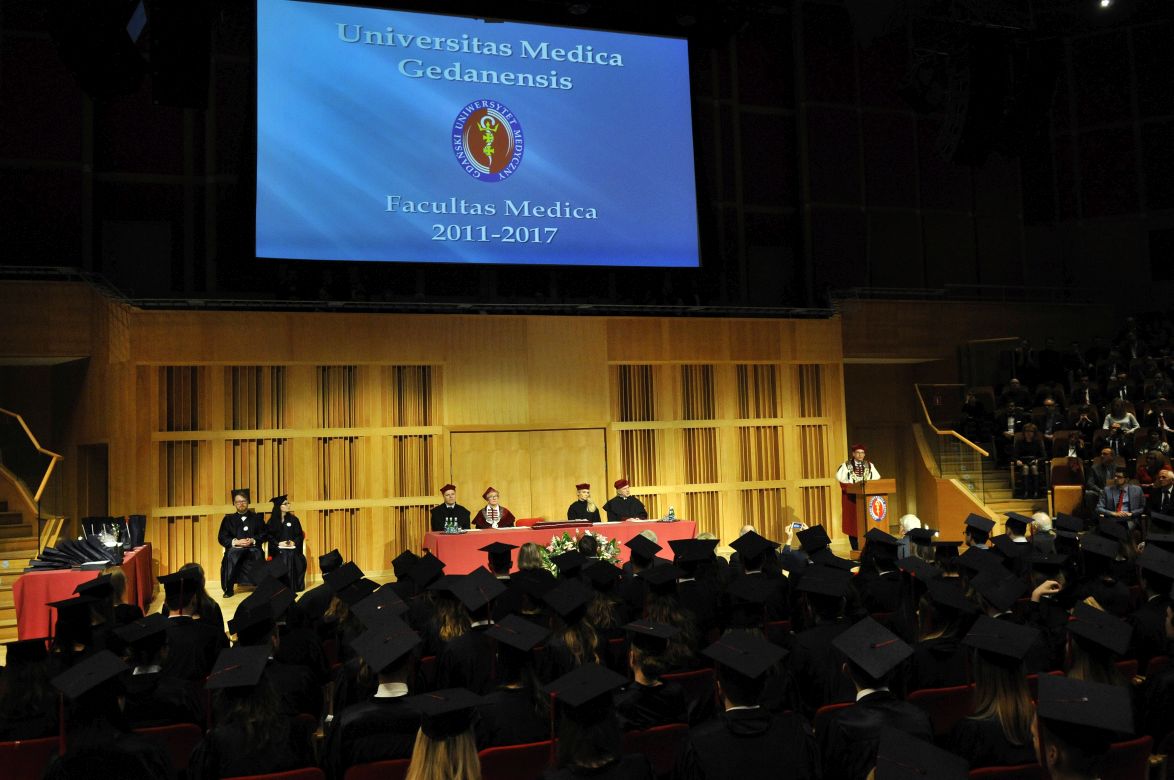 Absolwenci Wydziału Lekarskiego kierunku lekarskiego rocznika 2011 – 2017 odebrali dyplomy. Uroczystość odbyła się 4.11 br. w Polskiej Filharmonii Bałtyckiej im. Fryderyka Chopina. W dyplomatorium uczestniczył m.in. rektor GUMed prof. Marcin Gruchała, dziekan Wydziału Lekarskiego dr hab. Maria Dudziak, prof. nadzw. oraz prodziekani: dr hab. Małgorzata Sokołowska-Wojdyło, prof. Michał Żmijewski i dr hab. Bartłomiej Ciesielski.