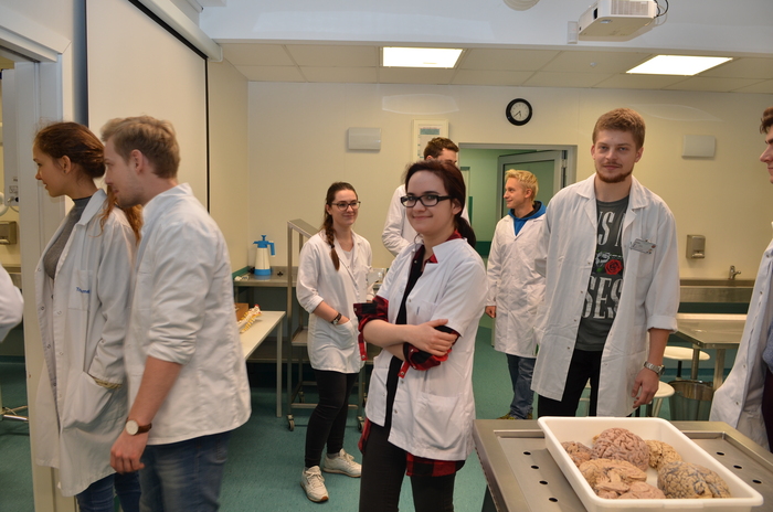 Tym razem przedsięwzięcie zostało zorganizowane wspólnie ze studentami SKN przy Katedrze i Klinice Neurochirurgii. Spotkanie zatytułowane „Podstawy anatomii w neurochirurgii” odbyło się we wtorek 14.11 br. W trakcie jego trwania członkowie obu kół naukowych podzielili się swoją wiedzą na temat m.in. podstaw anatomii czaszki i mózgowia. W spotkaniu uczestniczyli przede wszystkim członkowie koła anatomicznego i neurochirurgicznego, ale pojawili się też studenci kierunku psychologia zdrowia zainteresowani omawianym tematem. Po części seminaryjnej odbyły się warsztaty w prosektorium Zakładu Anatomii i Neurobiologii. Nad poprawnością merytoryczną czuwał dr Jan Spodnik, opiekun SKN przy Zakładzie Anatomii i Neurobiologii.