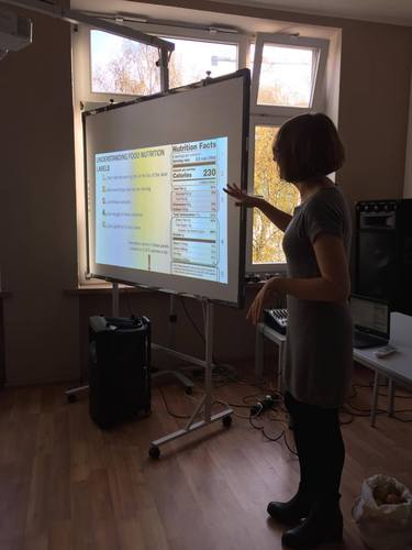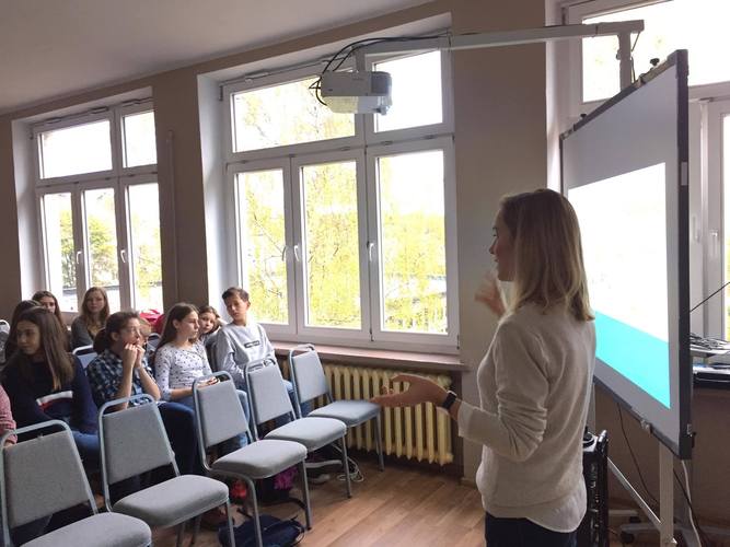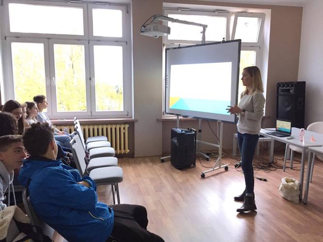 Studenckie Koło Naukowe Dietetyki działające przy Katedrze Żywienia Klinicznego GUMed rozpoczęło w tym roku swoją działalność od przeprowadzenia wykładu w Zespole Kształcenia Podstawowego i Gimnazjalnego nr 17 w Gdańsku (ZKPiG nr 17). Dwie studentki II roku studiów magisterskich (Kamila Surgoft i Joanna Wojtkowiak) miały okazję poprowadzić zajęcia w języku angielskim dla goszczącej w Polsce młodzieży z Portugalii i Rumunii oraz ich gospodarzy – uczniów ZKPiG nr 17. Głównym celem spotkania było przedstawienie zasad zdrowego żywienia i aktywności fizycznej pozwalających na odpowiedni rozwój organizmu. W trakcie zajęć zwracano uwagę na fakt, że współczesne choroby cywilizacyjne mogą być konsekwencją nieprawidłowych nawyków żywieniowych. Nie zabrakło również omówienia piramidy zdrowego żywienia oraz pysznych przepisów na wartościowe drugie śniadania i na zdrowe zamienniki przekąsek.