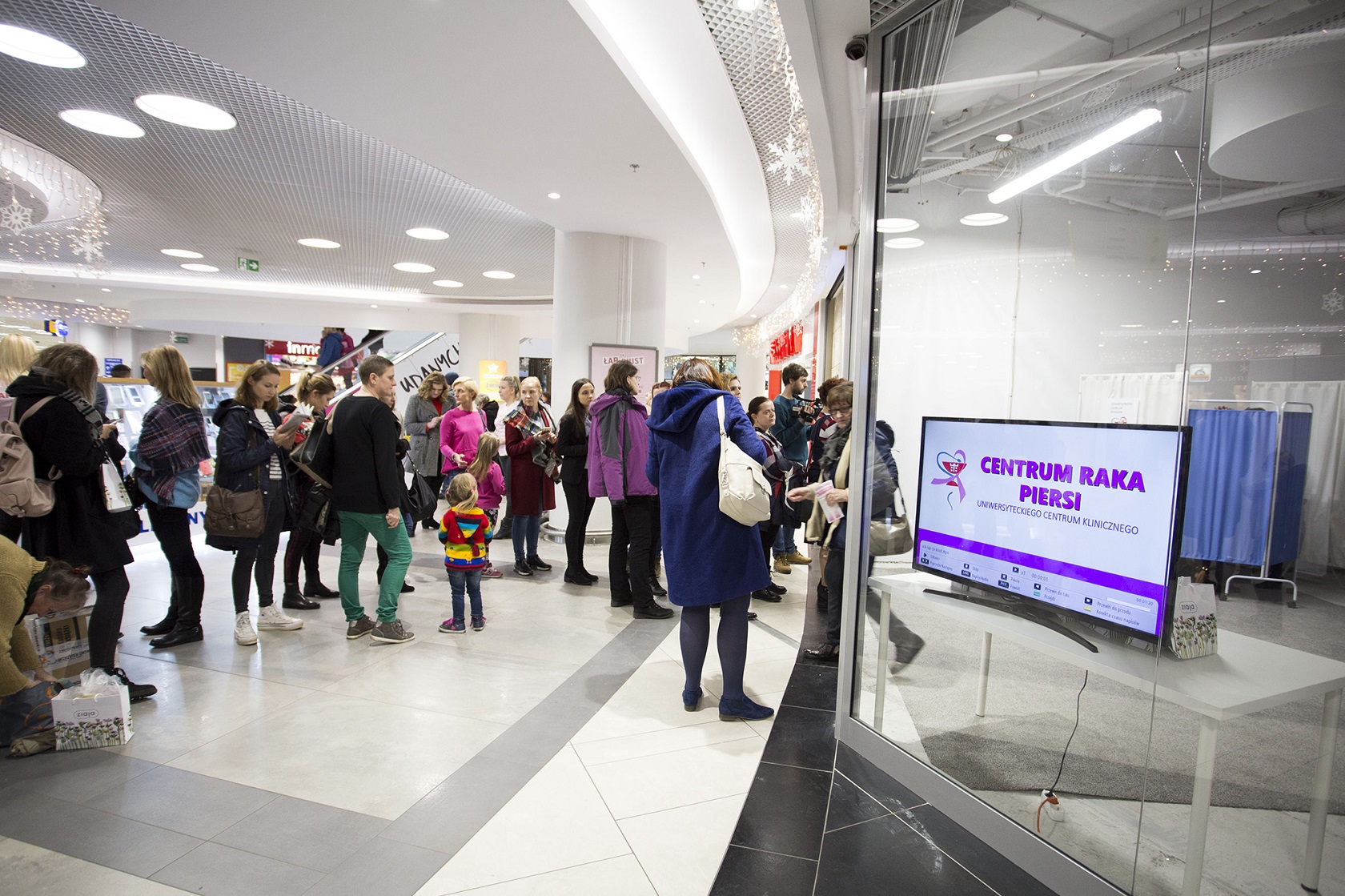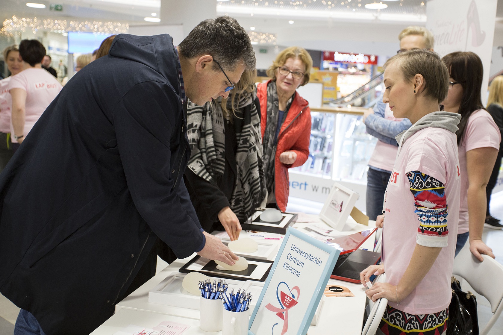 160 przebadanych kobiet, a 12 skierowanych na dalsze badania – to efekt akcji profilaktycznej „Łap za biust”, której partnerem głównym było Uniwersyteckie Centrum Kliniczne w Gdańsku. Podczas wydarzenia, które odbyło się 18 listopada br. w Centrum Handlowym Manhattan, chętni mogli skorzystać m.in. z konsultacji z chirurgami onkologicznymi, onkologami i specjalistami z Centrum Raka Piersi UCK oraz z bezpłatnego badania piersi.