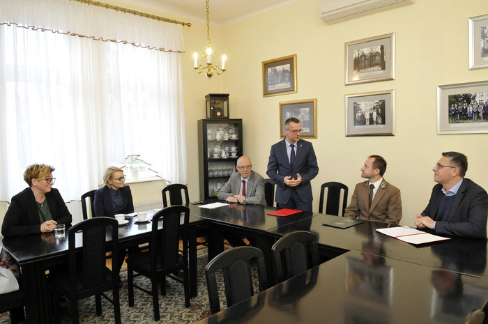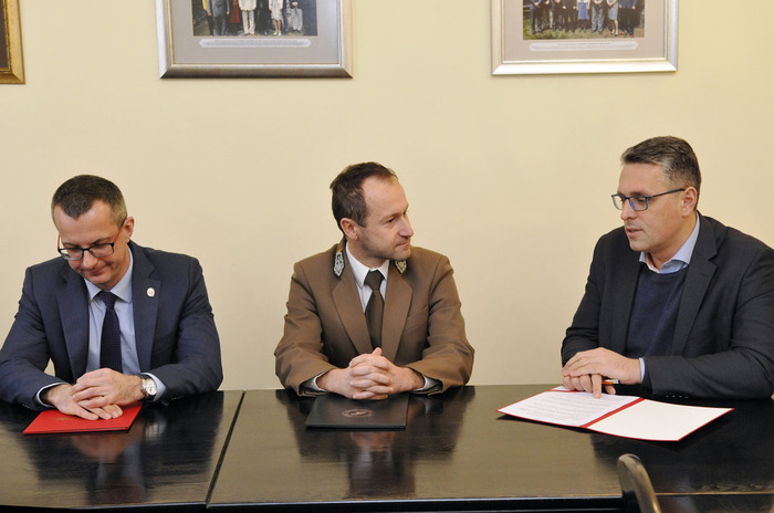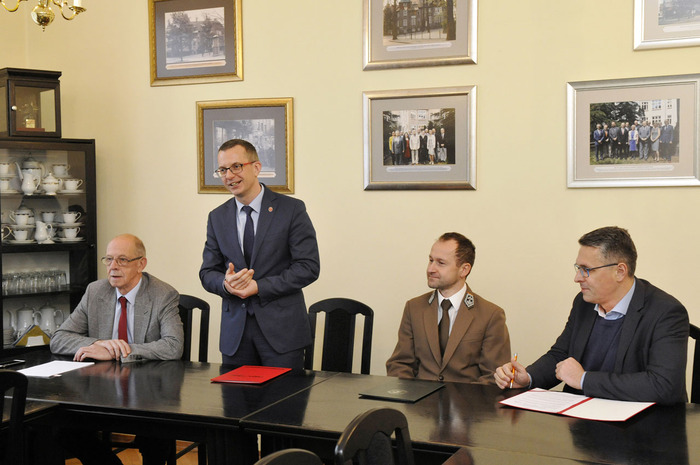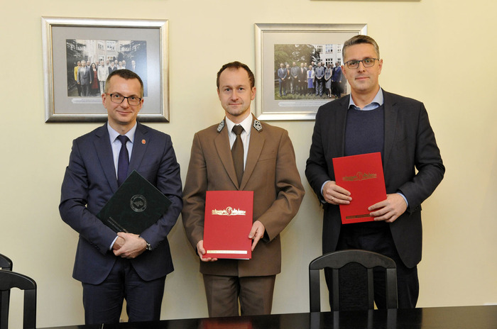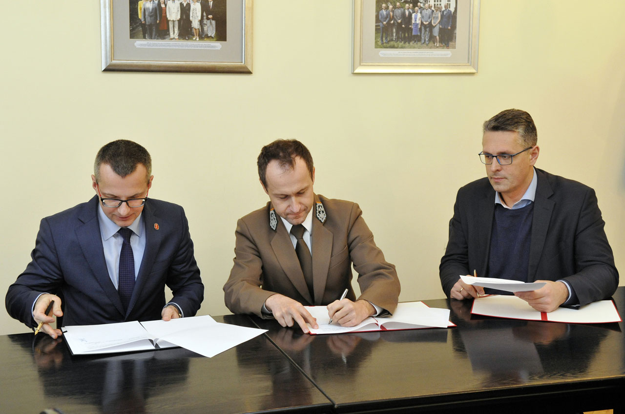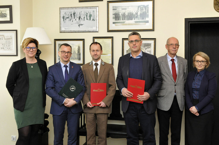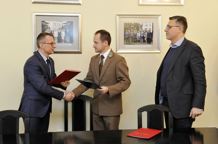 Rektor Gdańskiego Uniwersytetu Medycznego prof. Marcin Gruchała, dyrektor Regionalnej Dyrekcji Lasów Państwowych w Gdańsku dr inż. Adam Kwiatkowski i dyrektor naczelny Uniwersyteckiego Centrum Klinicznego w Gdańsku Jakub Kraszewski podpisali 29 listopada br. trójstronne porozumienie o współpracy. Wspólne działania dotyczyć będą m.in. edukacji ekologicznej i zdrowotnej mieszkańców Pomorza oraz inicjatyw o charakterze naukowym i popularnonaukowym. Strony deklarują również chęć współpracy w zakresie zagospodarowania przestrzeni zielonej wokół Uczelni i Szpitala, by była miejscem przyjaznym dla pracowników, studentów oraz pacjentów przebywających pod opieką Uniwersyteckiego Centrum Klinicznego w Gdańsku. W spotkaniu udział wzięli także: kanclerz GUMed Marek Langowski, rzecznik prasowy RDLP Katarzyna Kaczmarek i Joanna Śliwińska, rzecznik prasowy GUMed.
