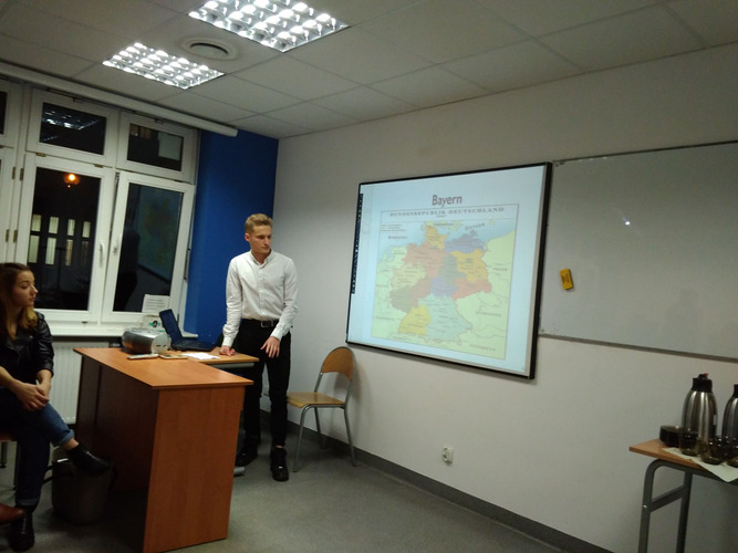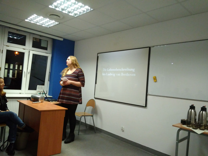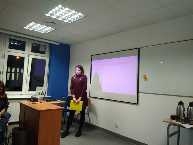 To był dzień pełen atrakcji dla miłośników kultury i języka niemieckiego. Studium Praktycznej Nauki Języków Obcych GUMed zorganizowało na Uczelni Dzień Niemiecki. Spotkanie, które odbyło się 6 grudnia br. zgromadziło studentów farmacji, elektroradiologii, analityki medycznej oraz technik dentystycznych. Przygotowali oni prezentacje multimedialne opracowane w języku niemieckim, opowiadali o lekarzach z Niemiec pracujących w Gdańsku, a także o swoich podróżach do naszych zachodnich sąsiadów. Koordynatorem projektu była Ewa Danisz.