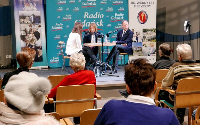 Dr Elżbieta Orłowska-Kunikowska i dr Bogumił Wolnik z Katedry i Kliniki Nadciśnienia Tętniczego i Diabetologii GUMed byli gośćmi ostatniego w tym roku spotkania z cyklu „Bądź zdrów bez kolejki”, które odbyło się 11 grudnia br. w Radiu Gdańsk. W studiu im. Janusza Hajduna pojawiły się nie tylko osoby dotknięte cukrzycą, ale także ci, którzy chcą się przed nią uchronić. Rozmowom przysłuchiwał się również Tomasz Augustyniak, dyrektor Wojewódzkiej Stacji Sanitarno-Epidemiologicznej w Gdańsku. Diabetolodzy z Gdańskiego Uniwersytetu Medycznego wyjaśnili słuchaczom, czym jest cukrzyca, jak się rozwija i jak można jej zapobiec. Specjaliści zgodnie potwierdzali, że potrzebna jest szersza edukacja w cukrzycy, bo bez właściwego zrozumienia choroby przez pacjenta nie będzie sukcesu w leczeniu. Zapisu całej rozmowy będzie można wysłuchać na antenie Radia Gdańsk w czwartek, 14 grudnia br. po godz. 17:30.