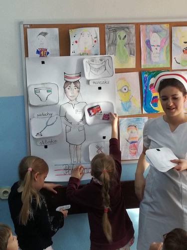 Studentki studiów drugiego stopnia I roku kierunku położnictwo w ramach zajęć praktycznych miały okazję prowadzić lekcję z gdańskimi uczniami. Warsztaty odbyły się w Szkole Podstawowej nr 38 im. gen. Stanisława Maczka pod okiem dr Haliny Nowakowskiej z Zakładu Zarządzania w Pielęgniarstwie GUMed. Uczestniczyły w nich dzieci z klas zerowych oraz pierwszych. Zadaniem studentek było przybliżenie dzieciom pracy jaką wykonują położne. Dzięki zajęciom młodzi ludzie mogli lepiej poznać ten zawód. Wielu uczniów także deklarowało, że chciałoby w przyszłości studiować na naszej Uczelni.