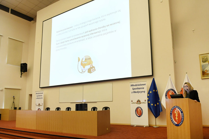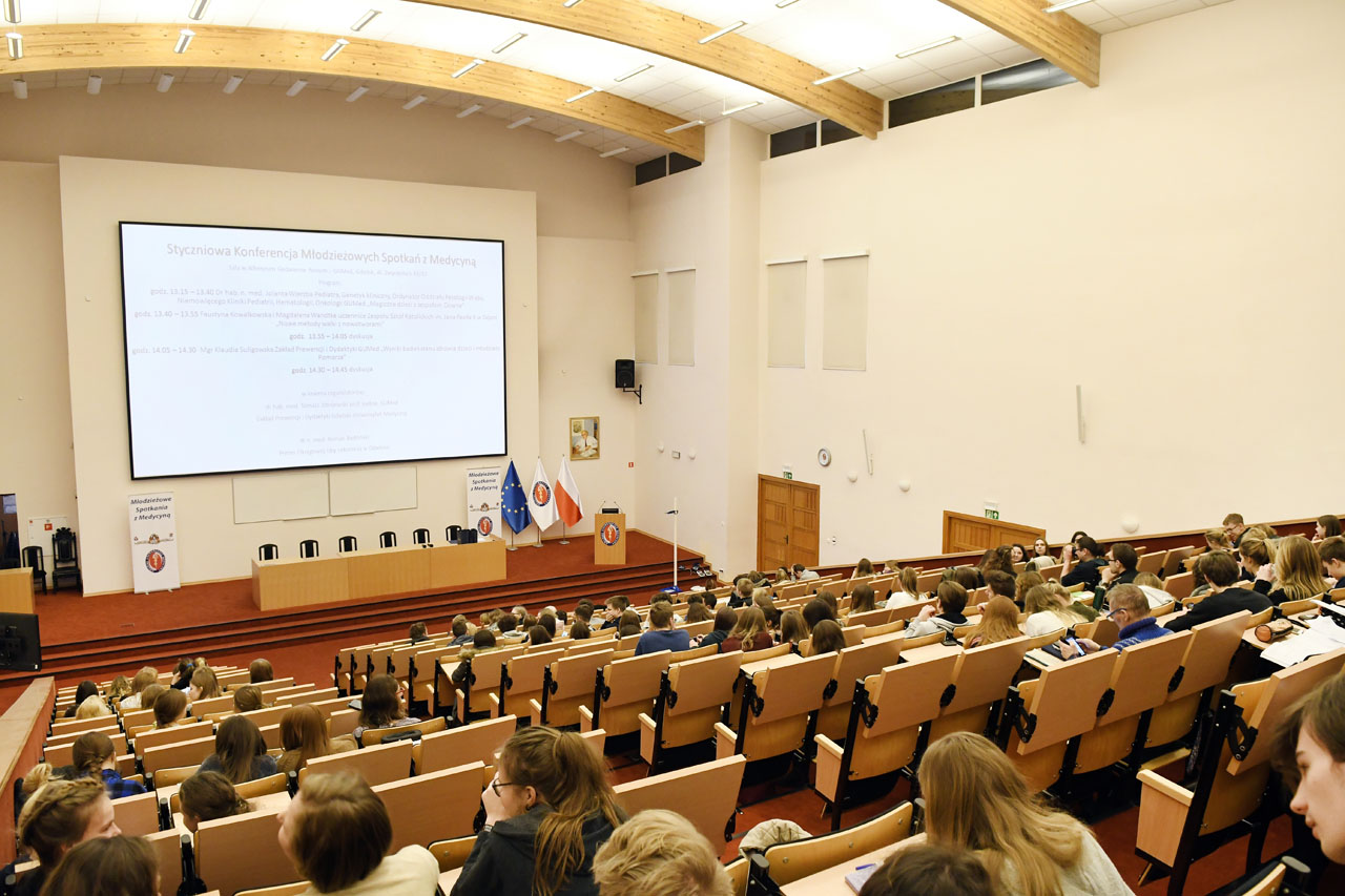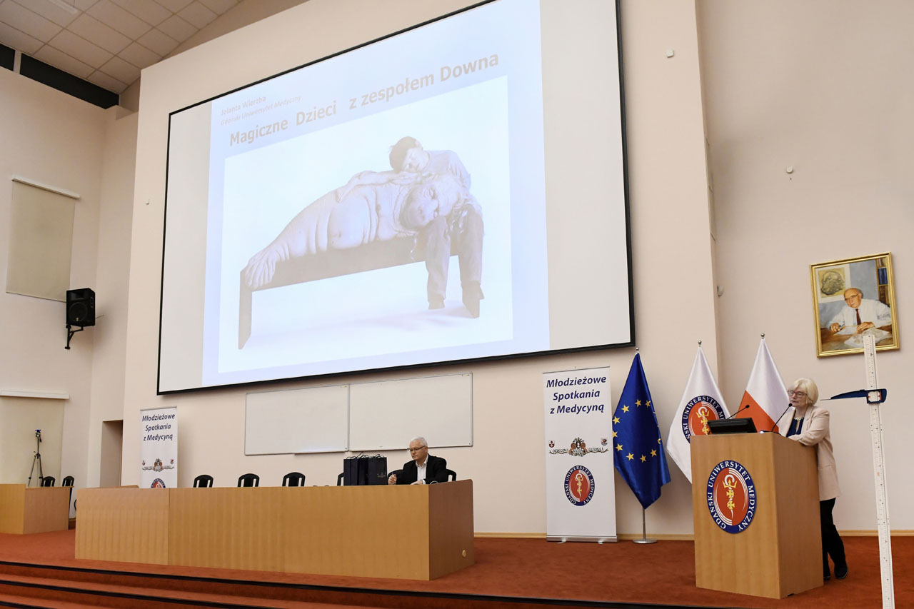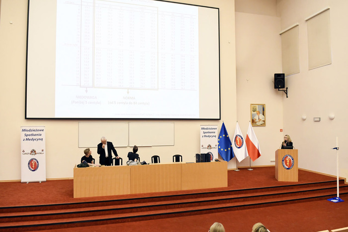 Za nami kolejne Młodzieżowe Spotkania z Medycyną. Wydarzenie odbyło się 23 stycznia br. w Atheneum Gedanense Novum. Spotkanie otworzyły Faustyna Kowalkowska i Magdalena Wandtke z Zespołu Szkół Katolickich im. Jana Pawła II w Gdyni, które przygotowały wykład pt. „Nowe metody walki z nowotworami”. Mgr Klaudia Suligowska z Zakładu Prewencji i Dydaktyki GUMed przedstawiła temat pt. „Wyniki badań stanu zdrowia dzieci i młodzieży Pomorza”, a dr hab. Jolanta Wierzba, ordynator Oddziału Patologii Wieku Niemowlęcego Katedry i Kliniki Pediatrii, Hematologii, Onkologii GUMed przedstawiła młodzieży prezentację pt. „Magiczne dzieci z zespołem Downa”. Wydarzenie jak zwykle cieszyło się dużym zainteresowaniem trójmiejskiej młodzieży.