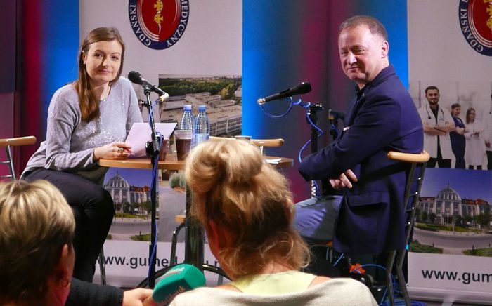 Dr Andrzej Mital z Katedry i Kliniki Hematologii i Transplantologii GUMed był gościem kolejnego spotkania z cyklu „Bądź zdrów bez kolejki”, które odbyło się w 12 marca br. w Radiu Gdańsk. Na co dzień pracuje w Klinice Hematologii i Transplantologii UCK w Gdańsku, która jest jedynym w północnej Polsce ośrodkiem oferującym pełny zakres świadczeń w dziedzinie hematologii i transplantacji komórek krwiotwórczych. Doktor Mital przyjmuje pacjentów w przyklinicznych poradniach: hematologicznej i zaburzeń hemostazy, które zapewniają specjalistyczną diagnostykę i leczenie pacjentom z chorobami hematologicznymi, w tym o podłożu onkologicznym. Podczas spotkania specjalista z Gdańskiego Uniwersytetu Medycznego opowiedział m.in. o najczęstszych chorobach układu krwiotwórczego, takich jak niedokrwistości, małopłytkowość czy zaburzenia krzepnięcia krwi. Rozmowa dotyczyła również ogólnego badania krwi, z omówieniem poszczególnych parametrów. Ponadto słuchacze mogli się dowiedzieć, czy choroby hematologiczne są dziedziczne i które schorzenia hematologiczne stanowią zagrożenie dla życia pacjenta. W spotkaniu udział wziął m.in. Tomasz Augustyniak, wojewódzki inspektor sanitarny. Całość rozmowy będzie można wysłuchać w najbliższy czwartek po godz. 17:30 na antenie Radia Gdańsk. Na kolejne spotkanie zapraszamy tradycyjnie w poniedziałek, 16 kwietnia br.