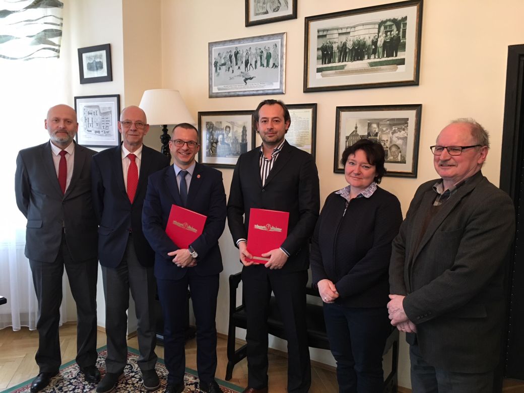 Rektor GUMed prof. Marcin Gruchała, kanclerz Marek Langowski i kwestor Jarosław Woźniak podpisali 16 marca br. umowę z firmą ERBUD S.A. na wykonanie w charakterze generalnego wykonawcy robót budowlanych wraz z dostawą sprzętu medycznego. Ze strony ERBUD S.A umowę podpisali pełnomocnicy Zbigniew Wojnowski oraz Wojciech Stasieczka.