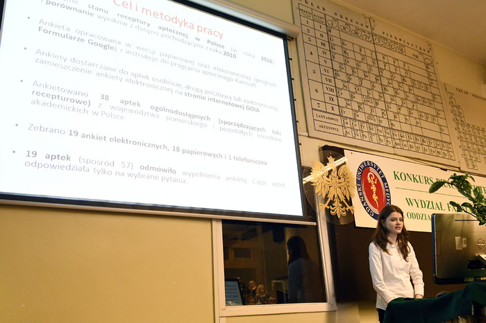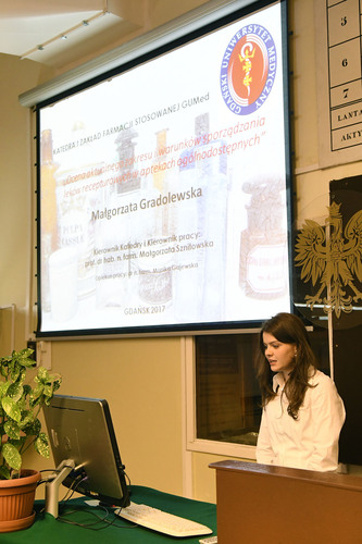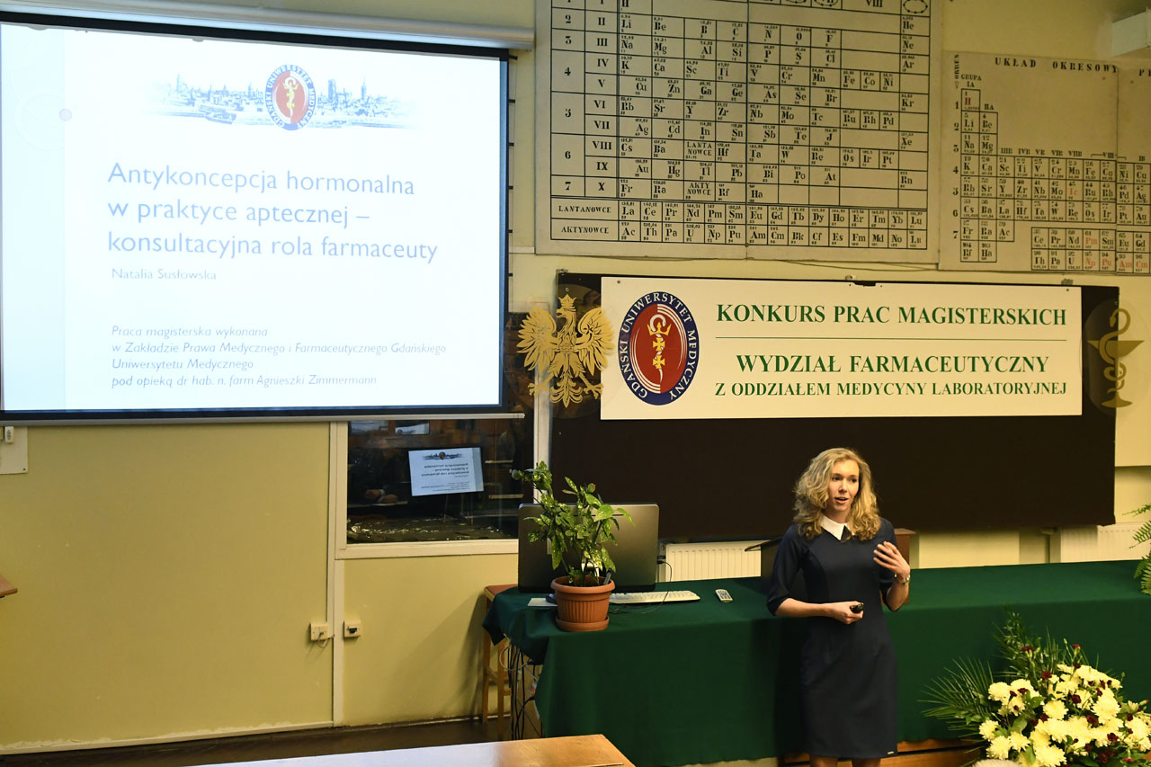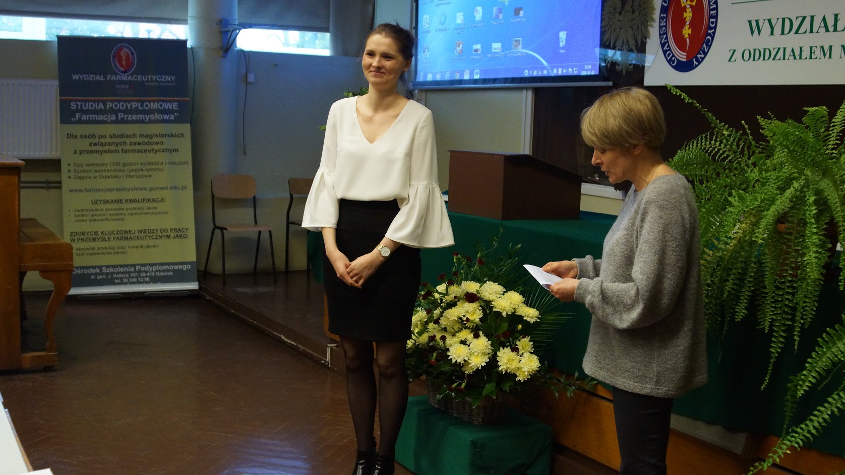Konkurs prac magisterskich wykonanych w roku akademickim 2016/2017 na kierunku farmacja wygrała Anna Stefaniak. Nagrodzona praca pod tytułem „Zastosowanie metabolomiki w poszukiwaniu mechanizmu powstawania zespołu policystycznych jajników” powstała pod kierunkiem dr. hab. Michała Markuszewskiego, prof. nadzw. z Zakładu Biofarmacji i Farmakodynamiki GUMed. Konkurs odbył się 20marca i został zorganizowany przez dziekana Wydziału Farmaceutycznego z OML prof. Michała Markuszewskiego we współpracy z PTSF Oddział Gdańsk. W tym roku zgłoszono aż 10 prac magisterskich.