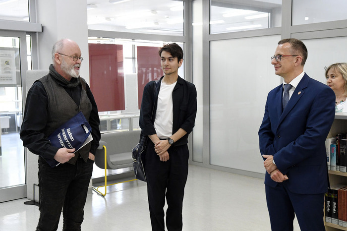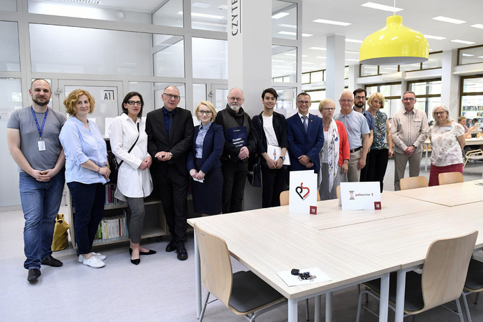 Dwadzieścia jeden projektów logotypów przygotowali studenci Wydziału Grafiki Akademii Sztuk Pięknych w Gdańsku pod opieką prof. Tomasza Bogusławskiego na potrzeby ogólnopolskiego programu PolSenior2, którego koordynatorem jest Zakład Prewencji i Dydaktyki Gdańskiego Uniwersytetu Medycznego. Projekty można było zobaczyć na wystawie w Czytelni Biblioteki Głównej i zagłosować na swojego faworyta. Ogłoszenie wyników konkursu odbyło się 12 maja br. W spotkaniu udział wzięli: rektor prof. Marcin Gruchała, prorektor ds. rozwoju i organizacji kształcenia prof. Jacek Bigda, kierownik projektu prof. Tomasz Zdrojewski, dyrektor Biura Projektów Katarzyna Grzejszczak i zespół głównych realizatorów projektu. Zgromadzonych gości powitała dyrektor Biblioteki Głównej GUMed Anna Grygorowicz. Zdecydowaną większością głosów wygrał projekt, którego autorem jest Taner Gorkem Kucukaksoy, student z Ankary przebywający w gdańskiej ASP w ramach wymiany międzynarodowej.