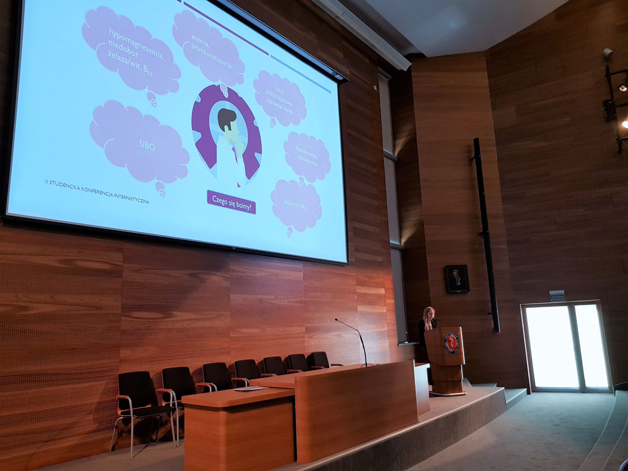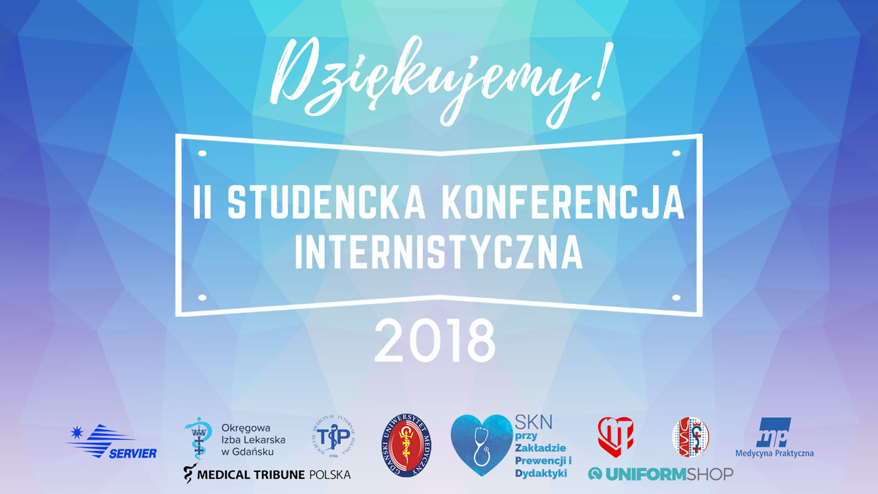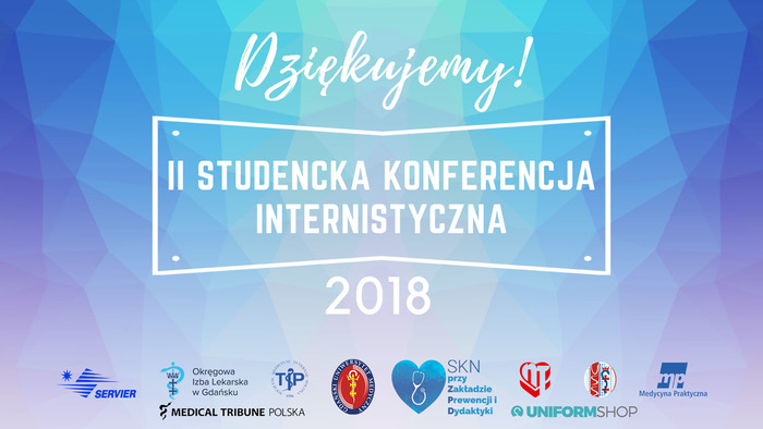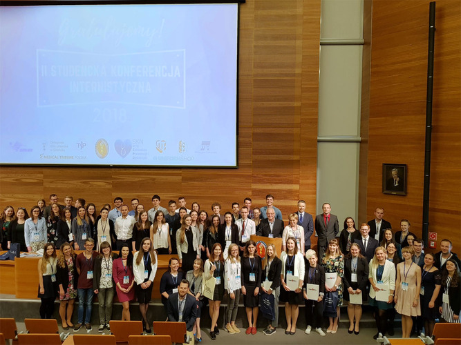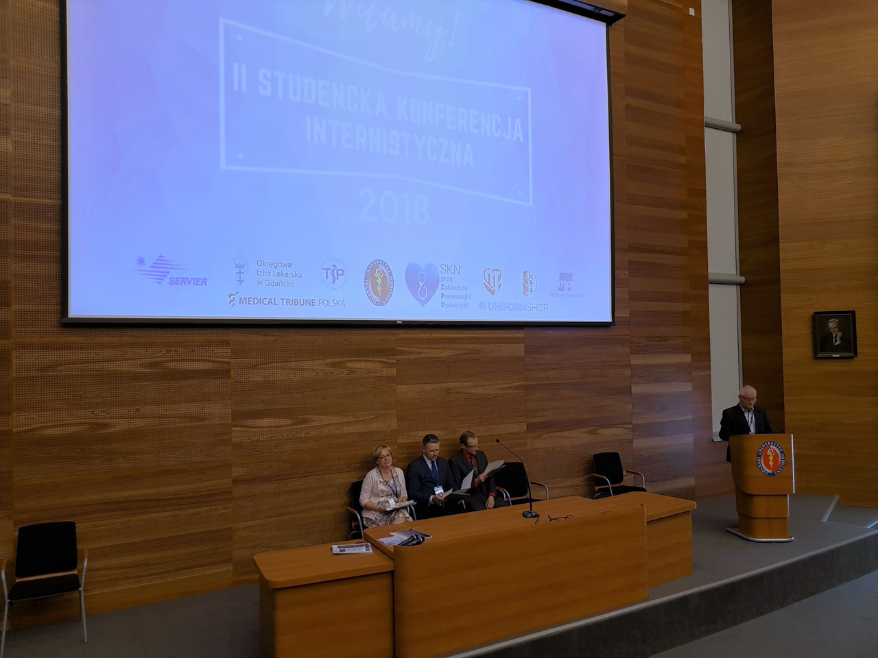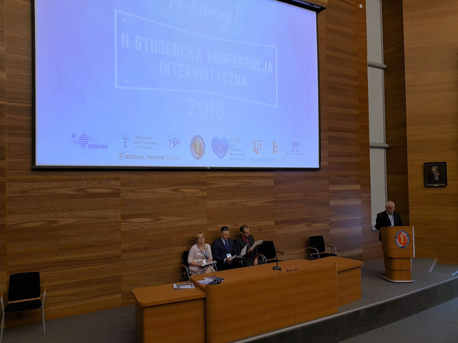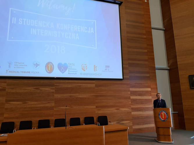 II Studencka Konferencja Internistyczna, której organizatorem było SKN przy Zakładzie Prewencji i Dydaktyki odbyła się 19 maja 2018 r. w Centrum Medycyny Inwazyjnej. Gości powitał opiekun SKN dr hab. Tomasz Zdrojewski, a Konferencja została oficjalnie otwarta przez prorektora ds. studenckich dr. hab. Tomasza Smiatacza oraz Marcina Nowińskiego z Okręgowej Izby Lekarskiej w Gdańsku. Dr hab. Michał Hoffmann z Kliniki Nadciśnienia Tętniczego i Diabetologii w niezwykle ciekawym wykładzie przedstawił uczestnikom Konferencji najnowsze kierunki rozwoju terapii najczęstszych internistycznych schorzeń. W sesjach naukowych Prac Oryginalnych oraz Przypadków Klinicznych wyniki swoich badań zaprezentowali studenci uczelni medycznych z całego kraju, a poziom ich prac oceniało jury złożone z lekarzy specjalistów Uniwersyteckiego Centrum Klinicznego GUMed: dr hab Wojciech Sobiczewski (I Katedra i Klinika Kardiologii), dr Maria Janiak (Katedra i Klinika Gastroenterologii i Hepatologii) i dr Łukasz Obołończyk (Katedra i Klinika Endokrynologii i Chorób Wewnętrznych). Wydarzenie było objęte patronatami Rektora GUMed, Okręgowej Izby Lekarskiej w Gdańsku, Towarzystwa Internistów Polskich oraz Polskiego Towarzystwa Nadciśnienia Tętniczego.